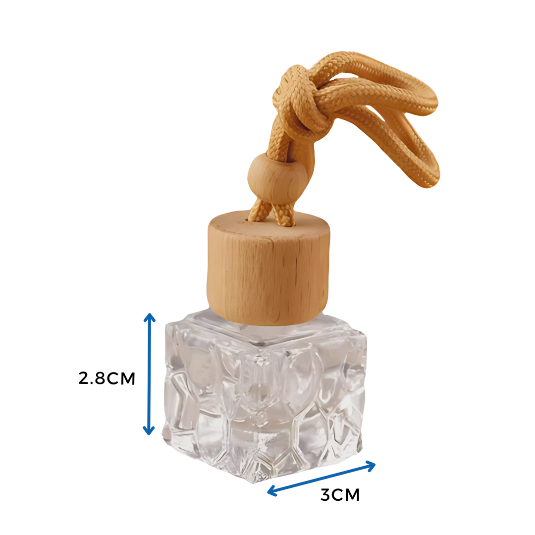 Este aromatizador de vidrio labrado de 8ml no solo perfuma, sino que tambiรฉn decora tu vehรญculo. Su diseรฑo grabado suma sofisticaciรณn, y su formato compacto es ideal para colgar del retrovisor sin ocupar espacio.