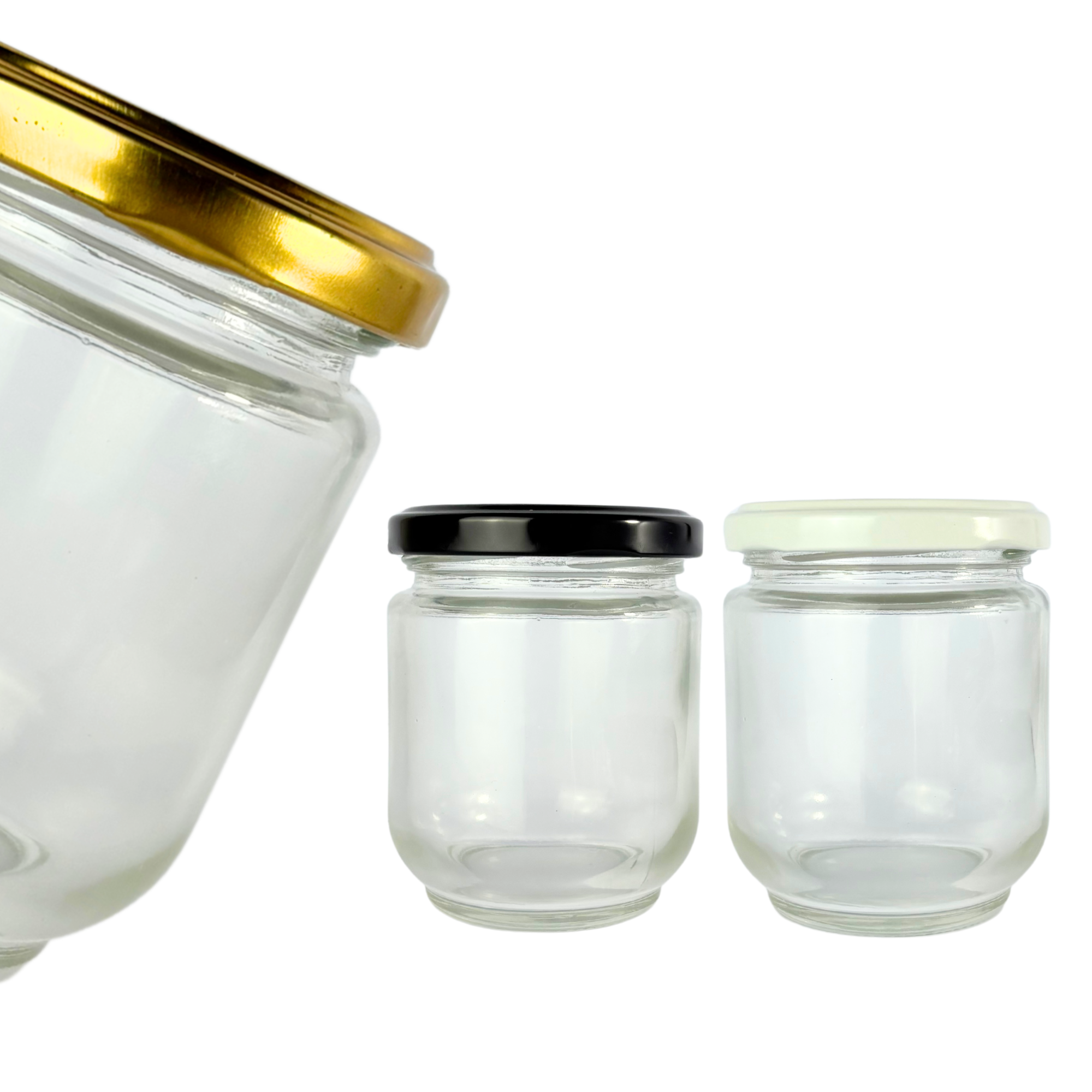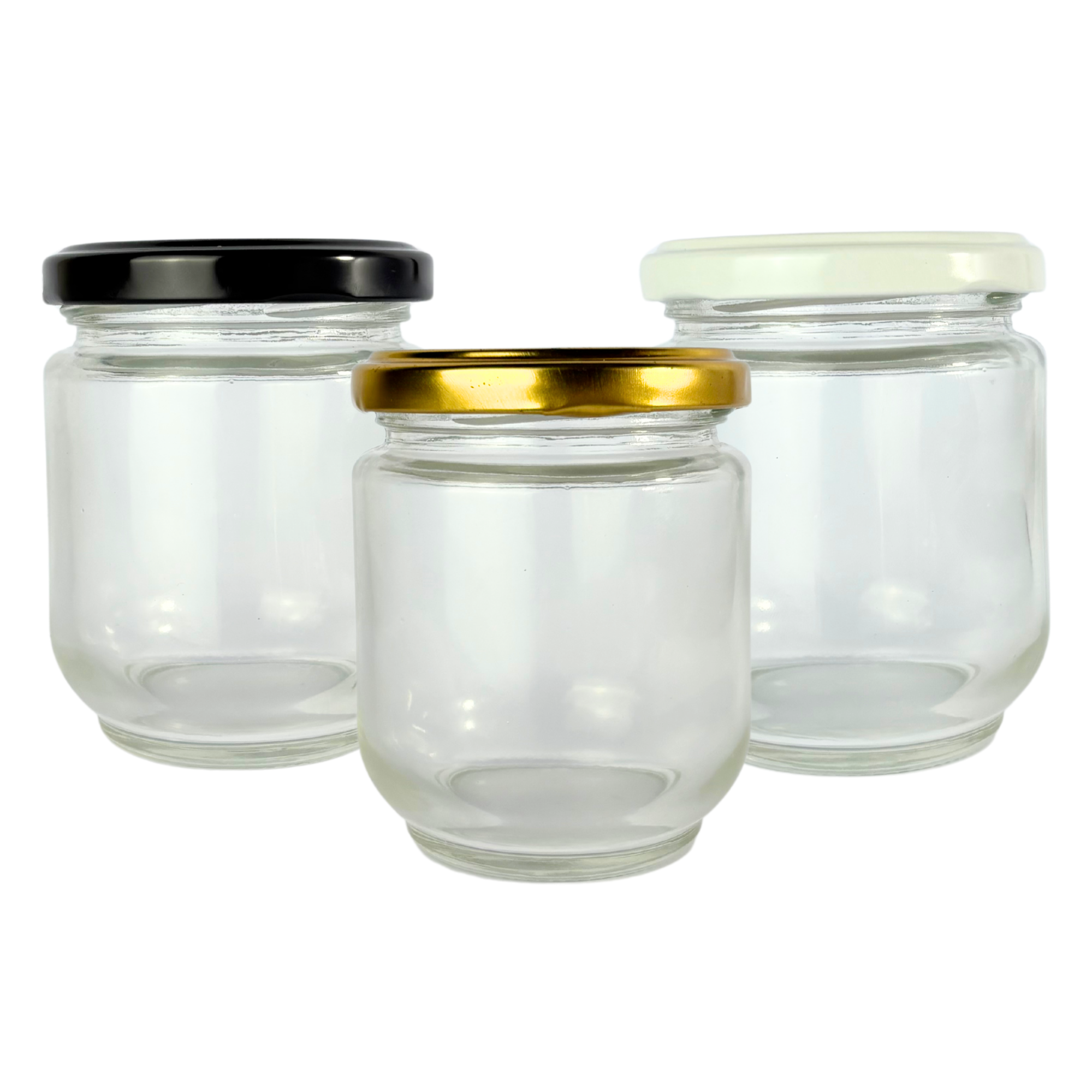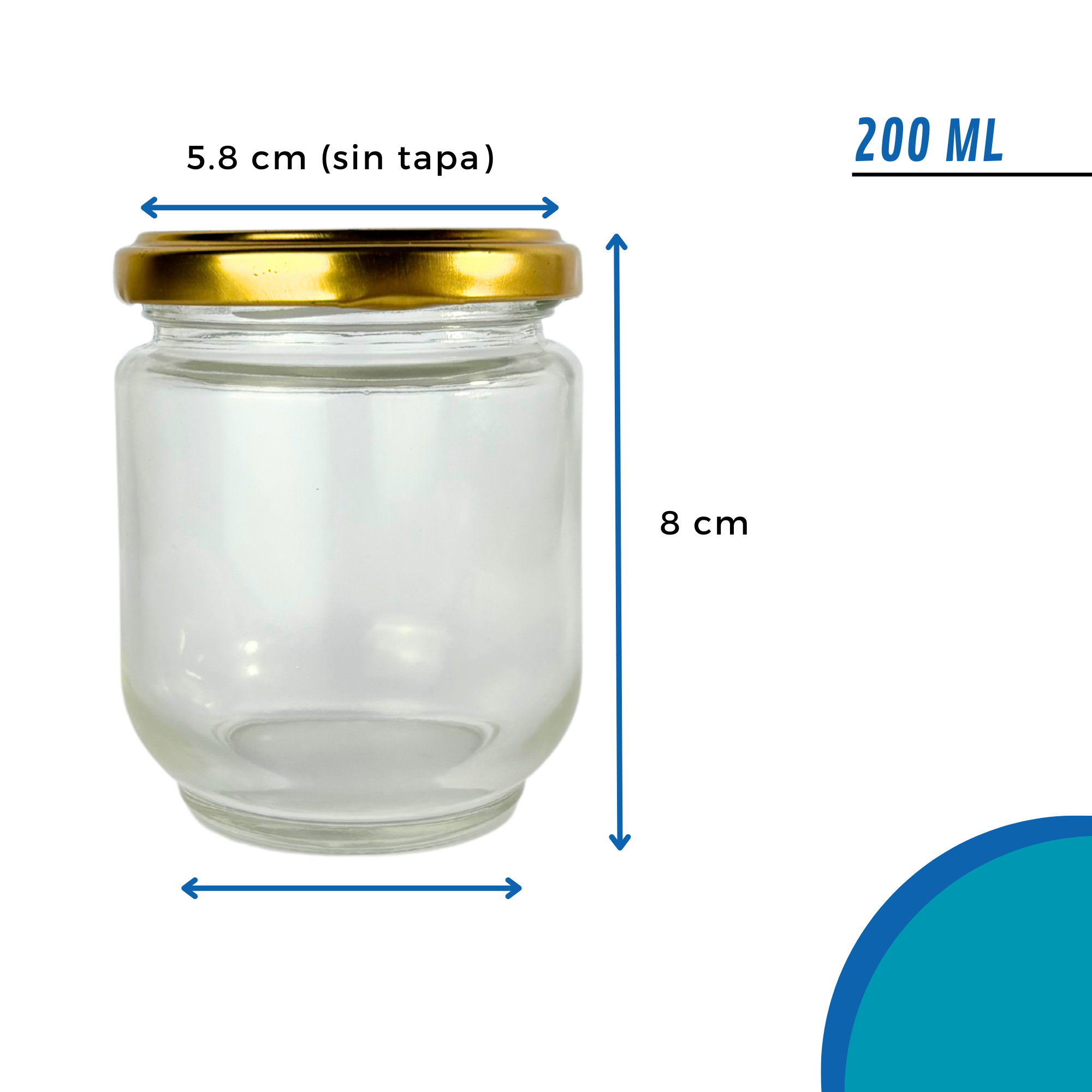 Este bollón de vidrio de 200ml es ideal para una gran variedad de usos: conservas, salsas, miel, velas, souvenirs, cosmética natural o regalos personalizados. Su formato resistente, con tapa metálica a rosca en tres colores (dorado, negro o blanco), se adapta a diferentes estilos y proyectos.