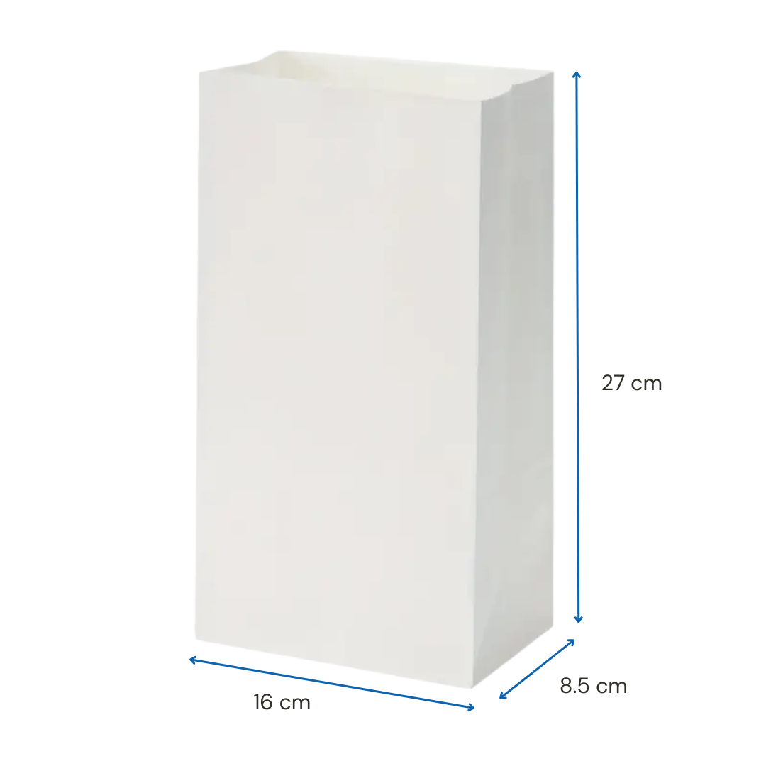 Nuestra bolsa de papel de 27×16 cm es una opción ideal para contener bizcochos, panes, galletas u otros productos recién horneados. Fabricada en papel de calidad, asegura una presentación prolija y limpia que realza el aspecto artesanal de tus elaboraciones.