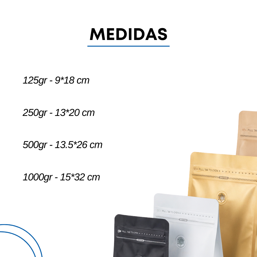 Bolsa Ziploc Para Café con Válvula | 4 Tamaños Disponibles