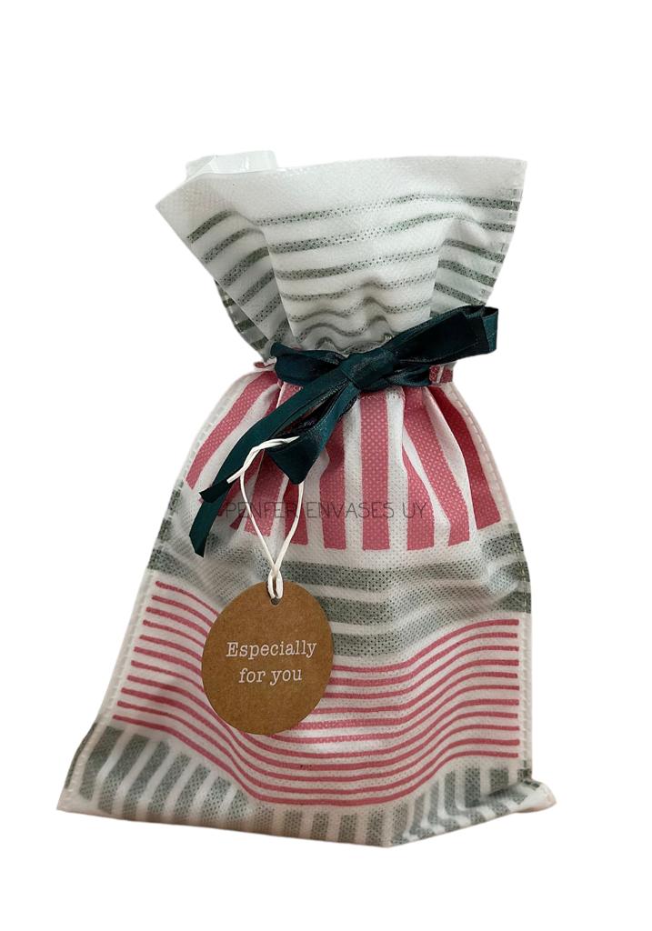 Bolsas de regalo de tnt con forro de nylon y etiqueta.