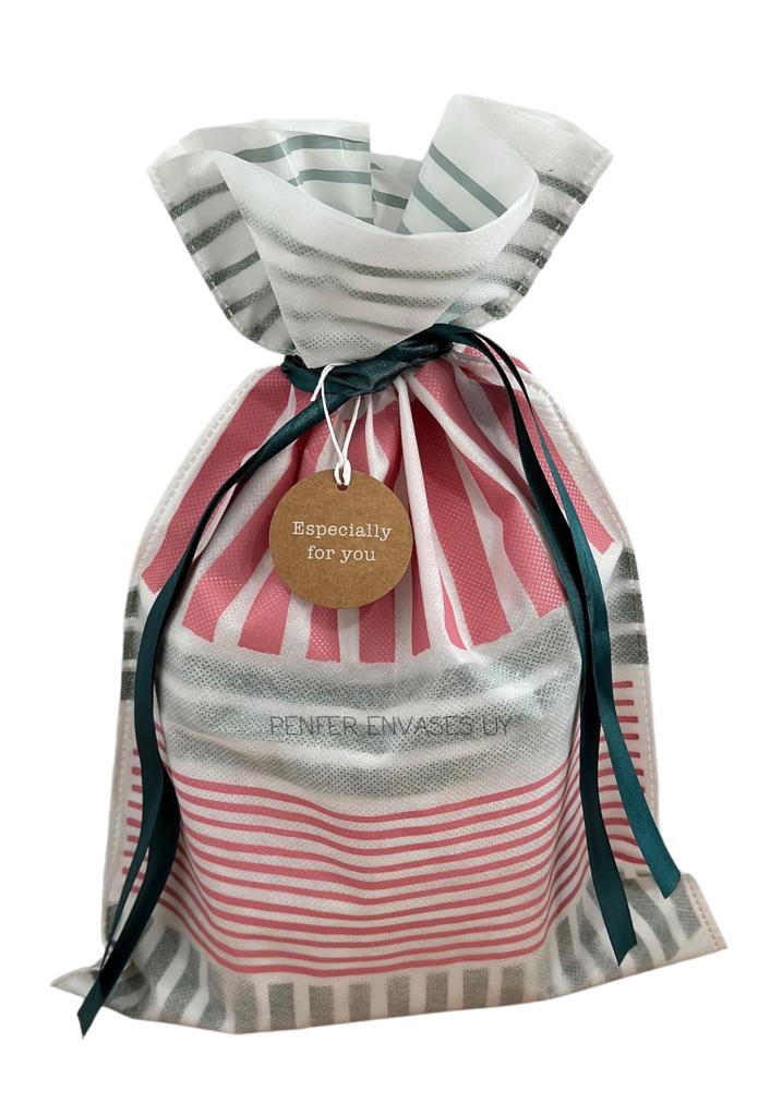 Bolsas de regalo de tnt con forro de nylon y etiqueta.