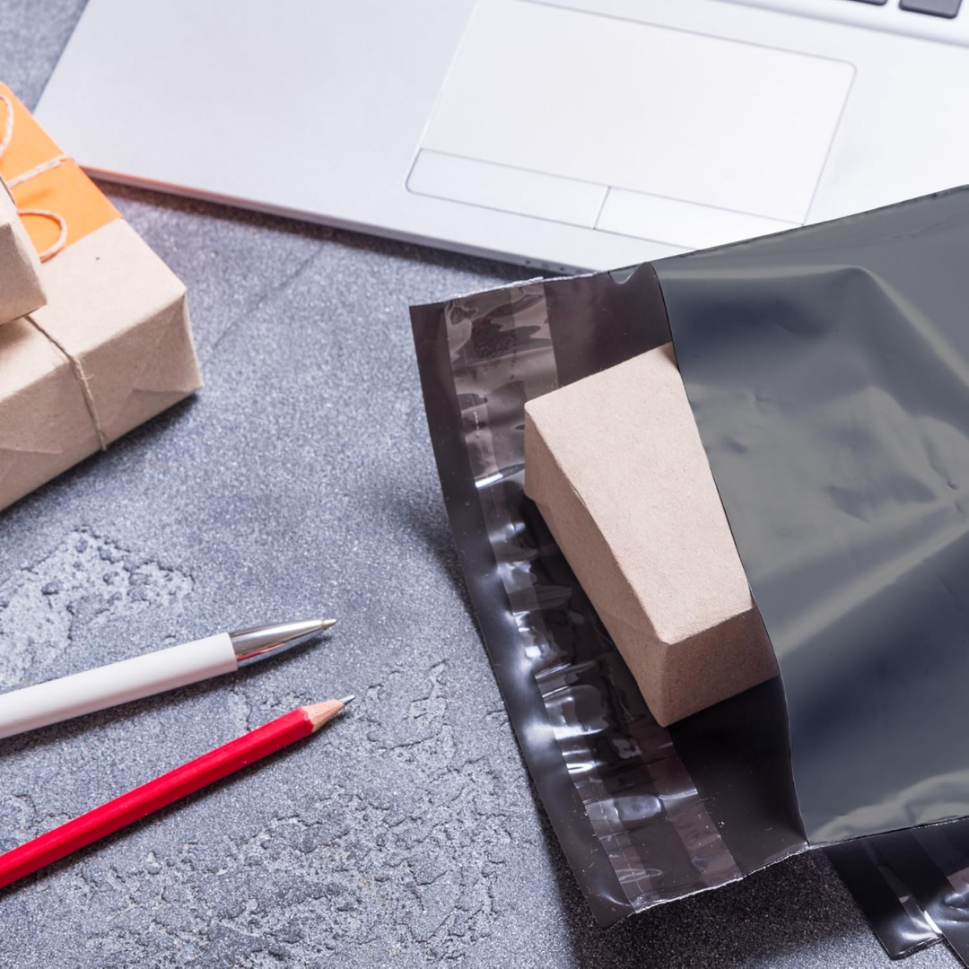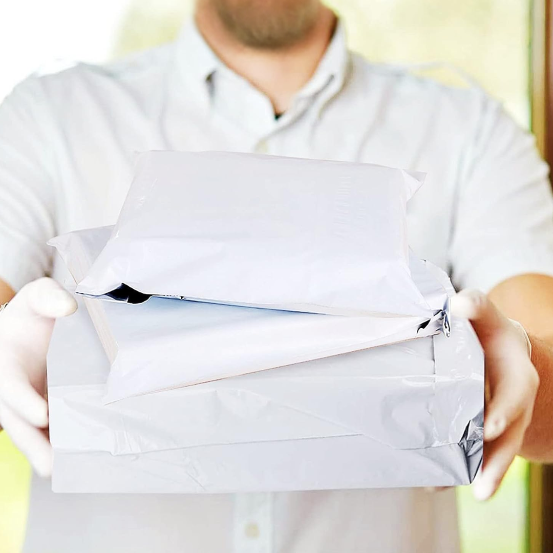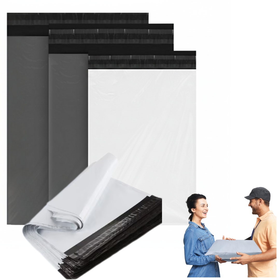 Fabricados en polímero de alta calidad, cuentan con adhesivo inviolable que previene aperturas durante el transporte. Son resistentes al agua, opacos para mayor privacidad y poseen una superficie lisa que facilita la colocación de etiquetas o impresiones.