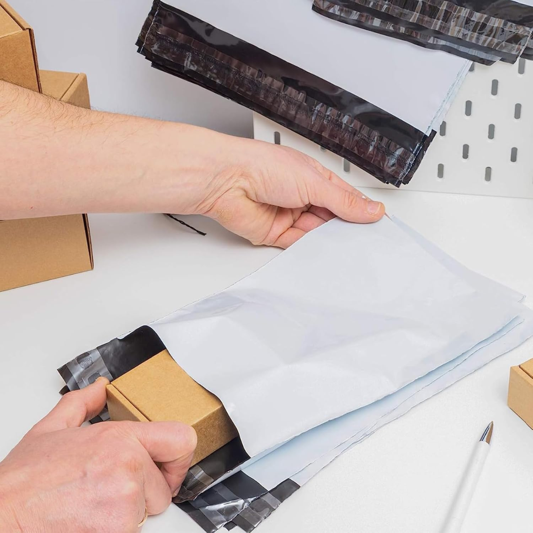 Su resistencia los convierte en una alternativa confiable para prendas de vestir, documentación, artículos livianos y otros productos que no requieran cajas rígidas. Disponibles en colores blanco o negro y en tres medidas para adaptarse a distintos formatos de envío.