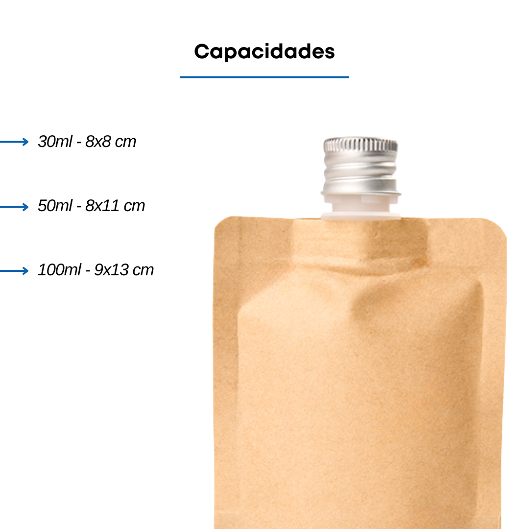 Bolsa Con Boquilla Kraft | Tapa Metálica | 3 Capacidades Disponibles