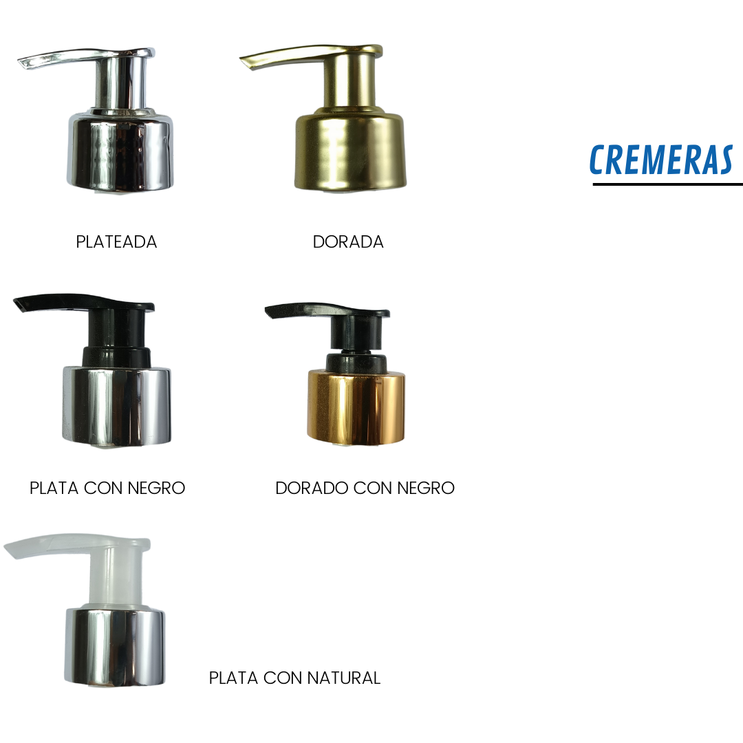 IMPORTANTE: Cremeras de color Amarillo, Verde, Celeste y Rojo corresponden solamente a la botella de 1000ml