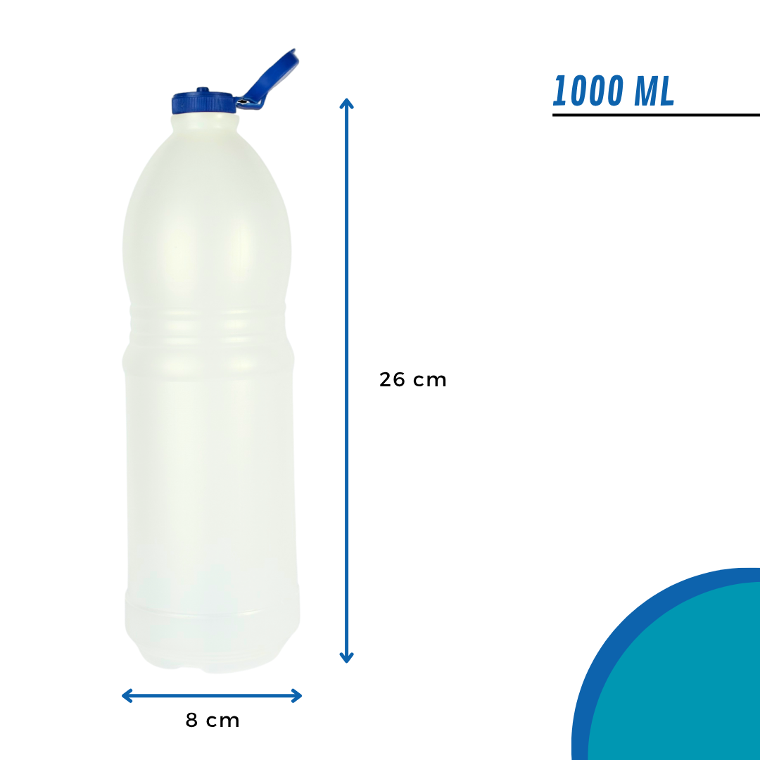 Esta botella PAD de 1000ml con tapa flip top azul a presiรณn estรก diseรฑada para contener lavandina, limpiadores o productos industriales. Su formato robusto y confiable facilita el uso y almacenamiento seguro.