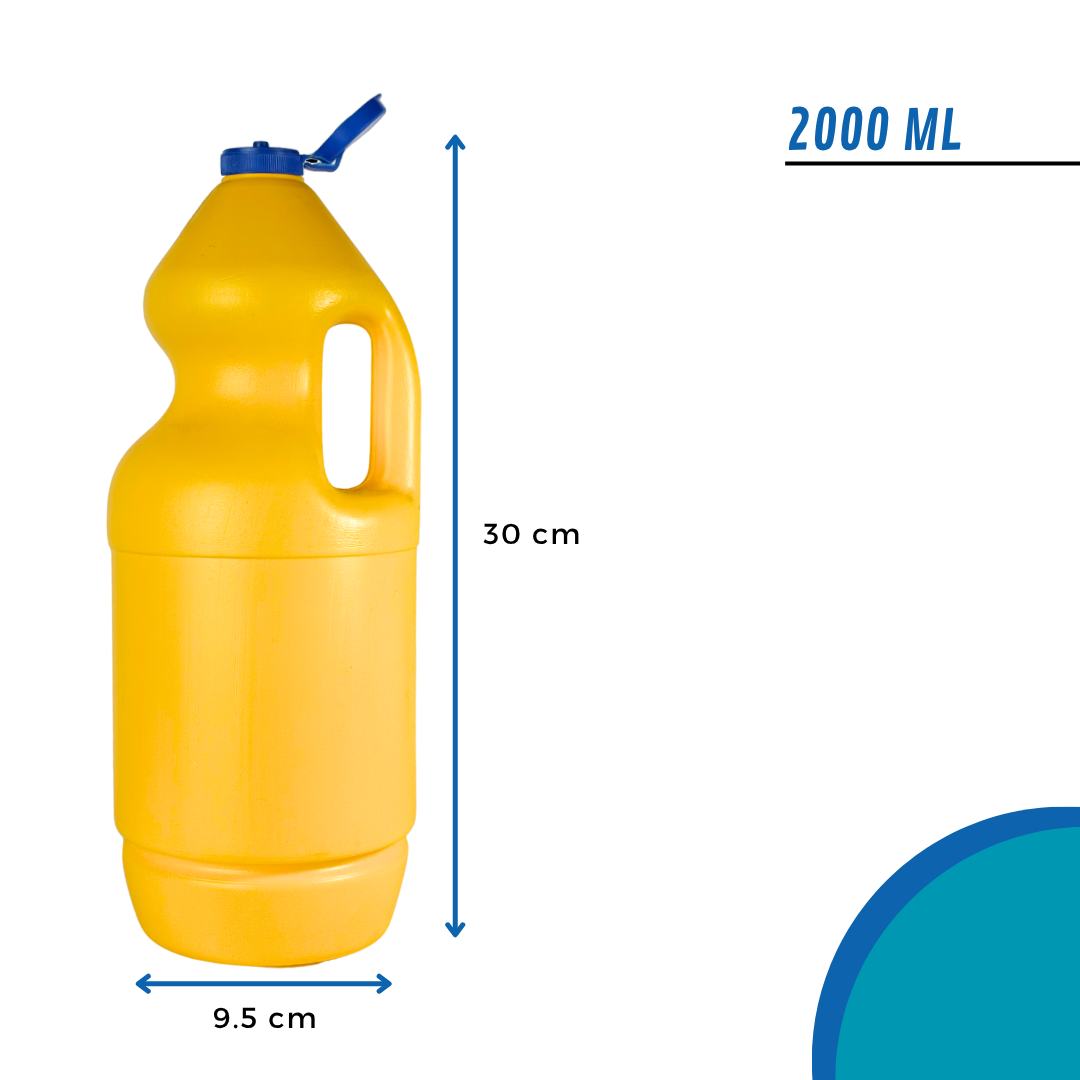 Esta botella PAD de 2000ml con manija ergonรณmica y tapa flip top azul estรก pensada para lavandina, limpiadores industriales o productos quรญmicos de uso frecuente. Su diseรฑo facilita el agarre y el vertido sin esfuerzo.