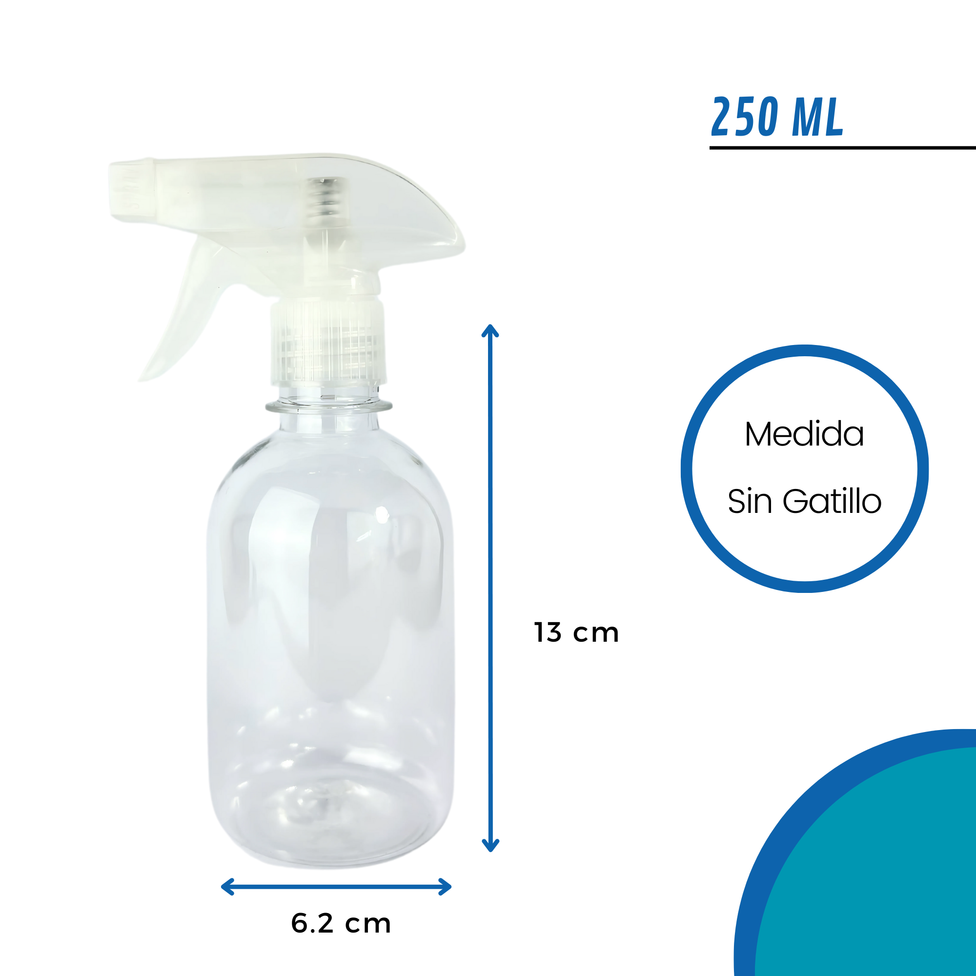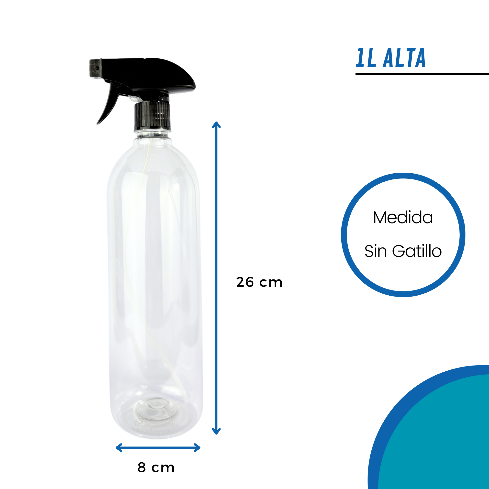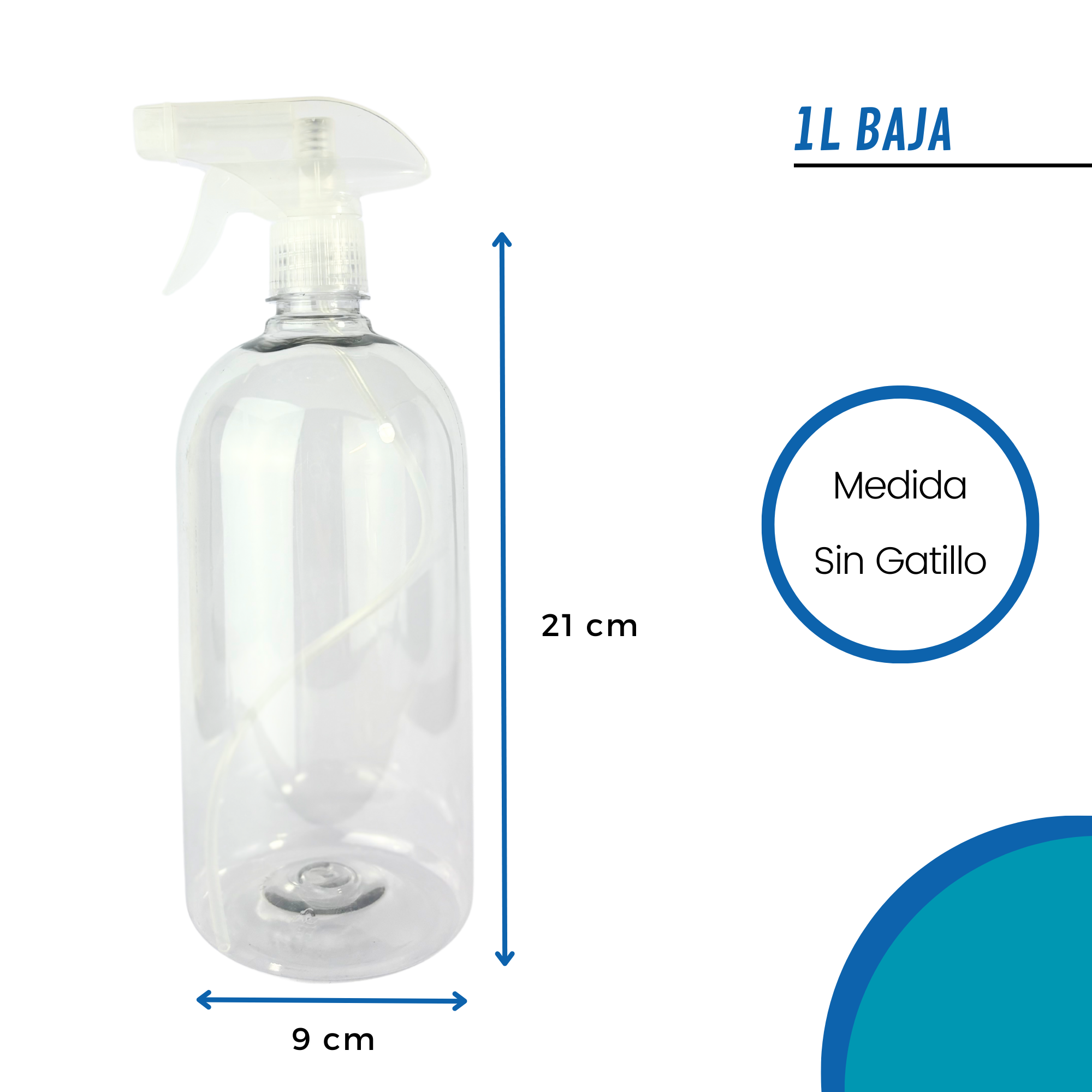 Ligera, resistente y con diseño funcional, esta botella es ideal para sanitizantes, aromatizadores y mucho más. Su transparencia te permite destacar el contenido y mantener un control visual fácil.