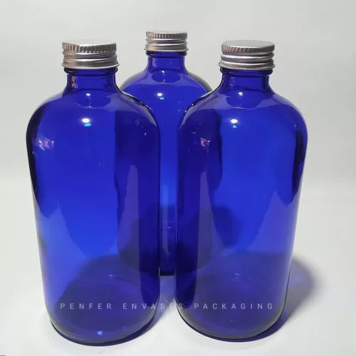 Botella Vidrio Azul 500 ml con Tapa Ciega de Metal cantidad