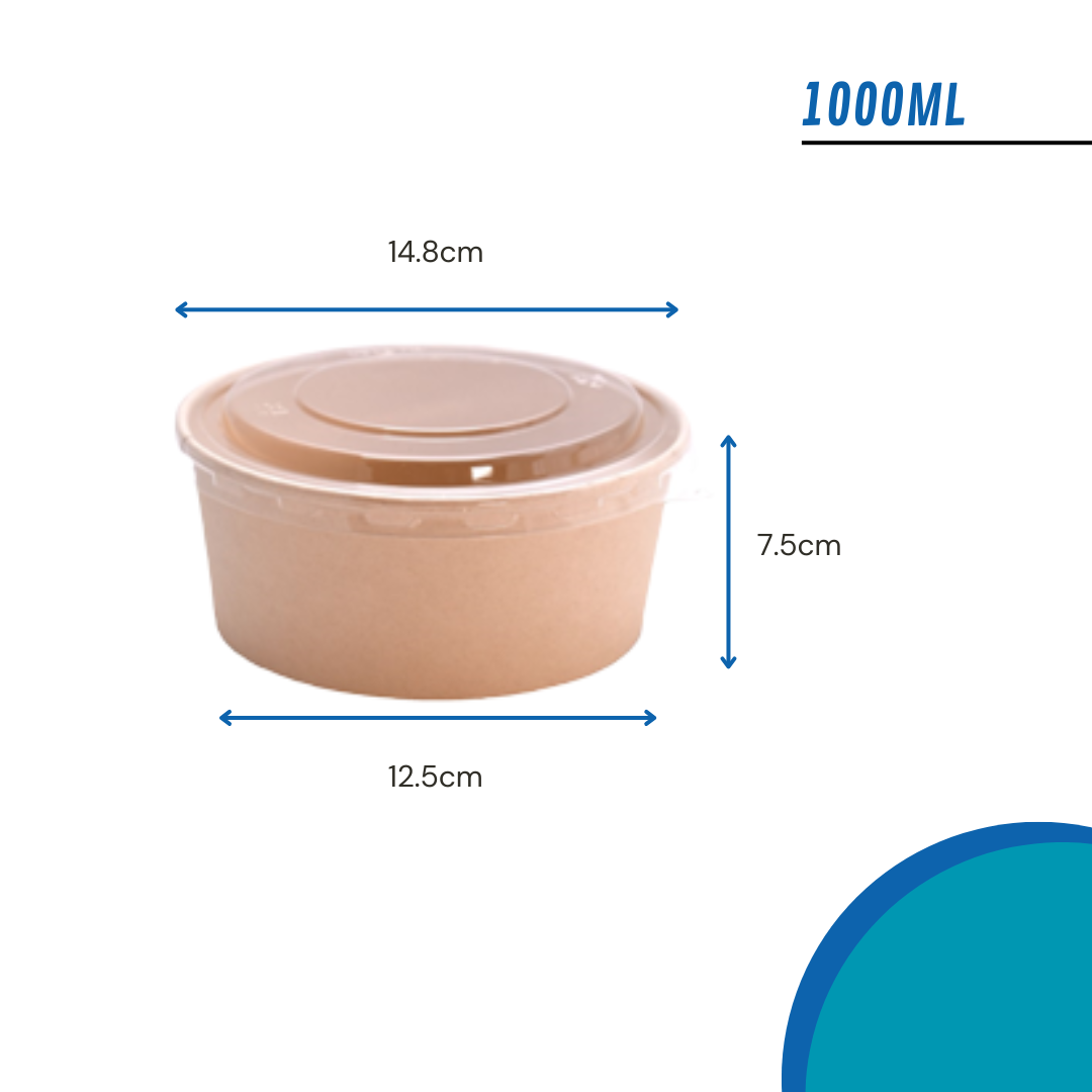 Fabricado con material ecológico polipapel, este bowl es apto para alimentos fríos y calientes, conservando su sabor y temperatura. Su tapa PET transparente permite visualizar el contenido con facilidad y asegura un cierre hermético para evitar derrames.