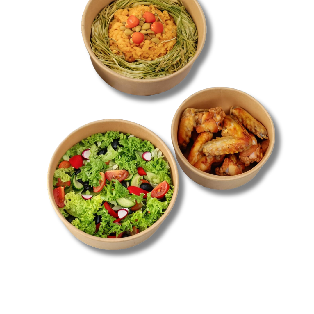 Ideal para ensaladas, poke bowls, frutas, snacks y más, es una opción versátil para delivery, restaurantes y uso personal. Su diseño natural y su visibilidad mejoran la presentación de cada platillo.