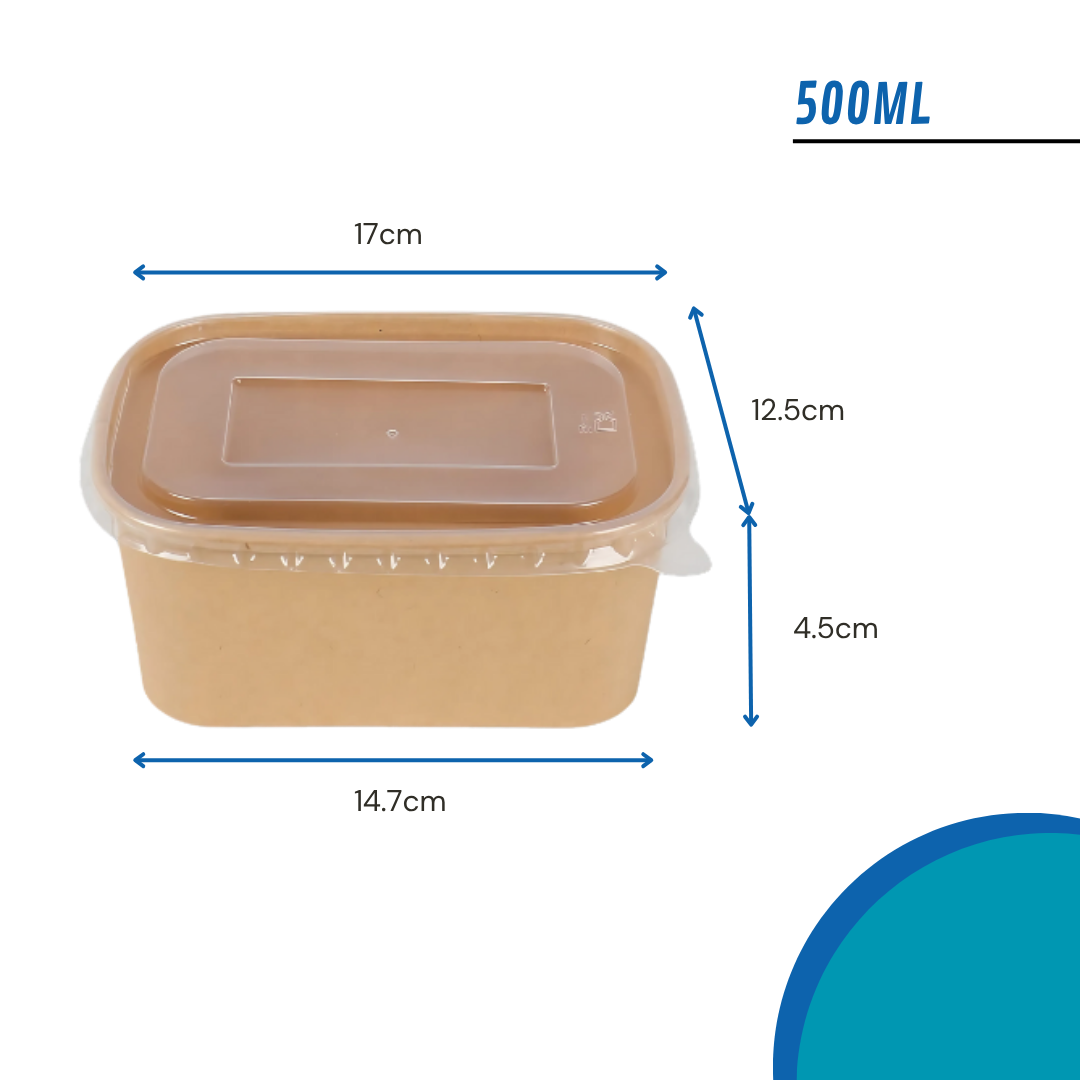 Dale a tus comidas una presentación moderna y sustentable. Este bowl rectangular de 500ml en kraft combina funcionalidad y estética para un empaque versátil y práctico.