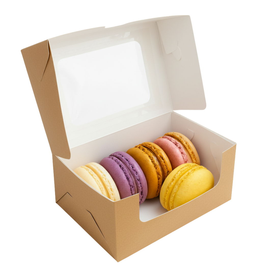 Presentá tus dulces con una estética impecable gracias a esta caja blanca con visor amplio, diseñada para destacar cada detalle sin necesidad de abrirla.