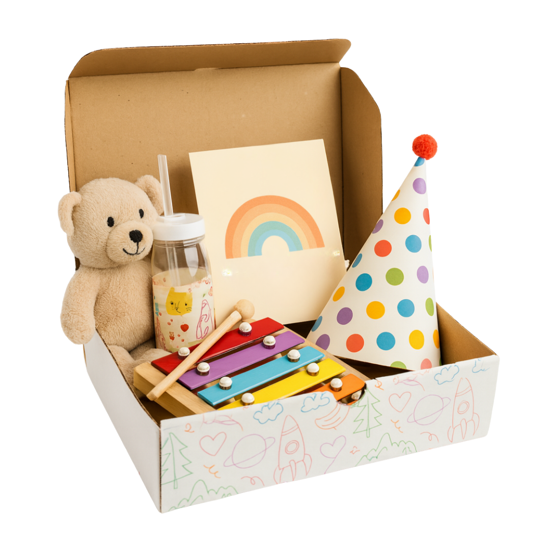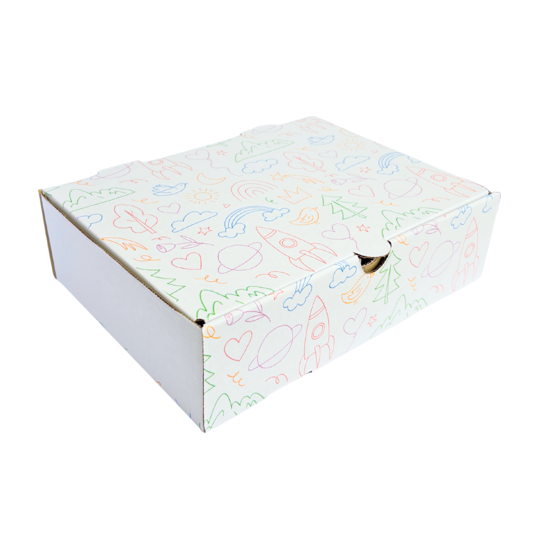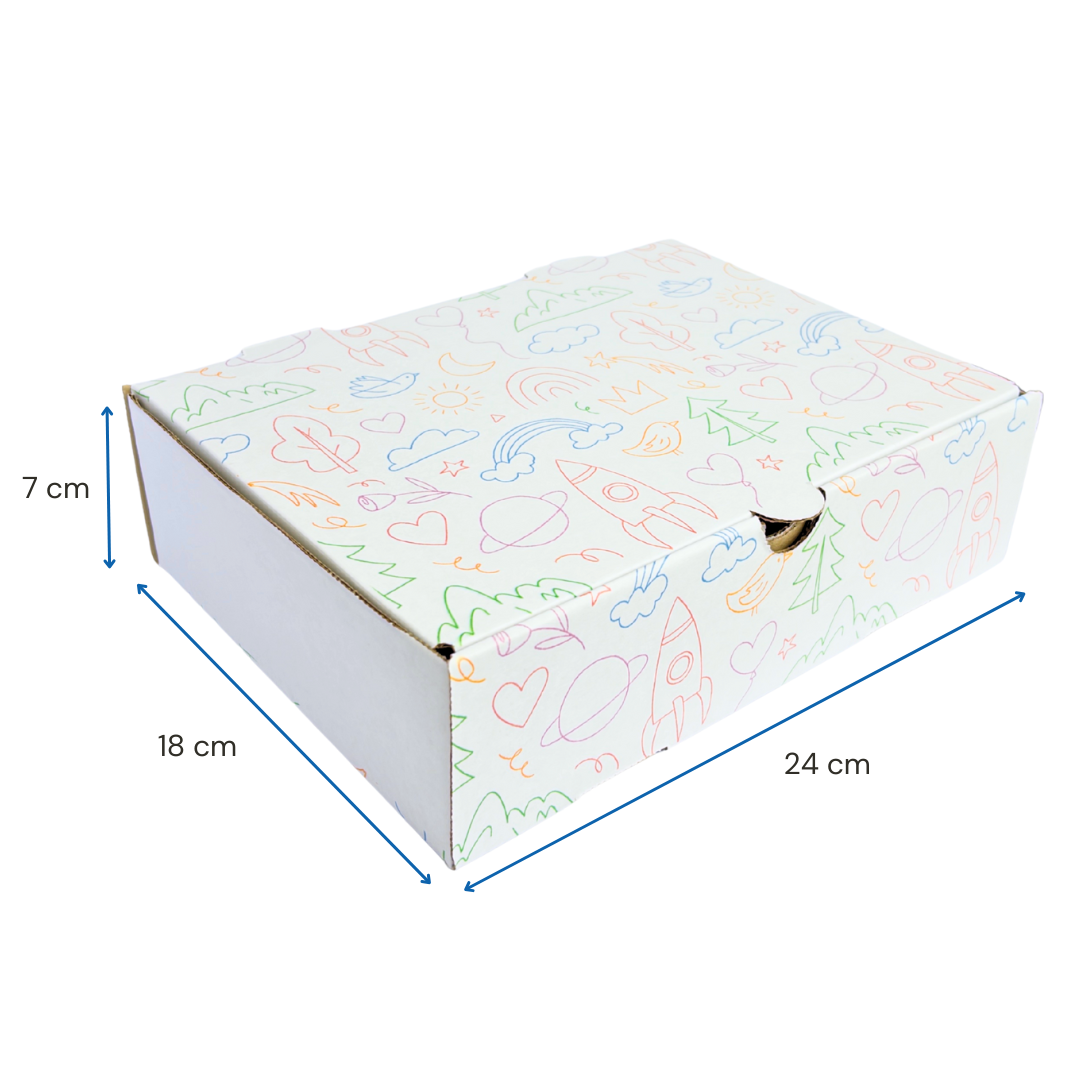 Con un estampado colorido que celebra la alegría de los más chicos, esta caja no solo es funcional, sino también una parte clave del regalo. Su formato rígido asegura resistencia y durabilidad, manteniendo su forma incluso con productos voluminosos o pesados.