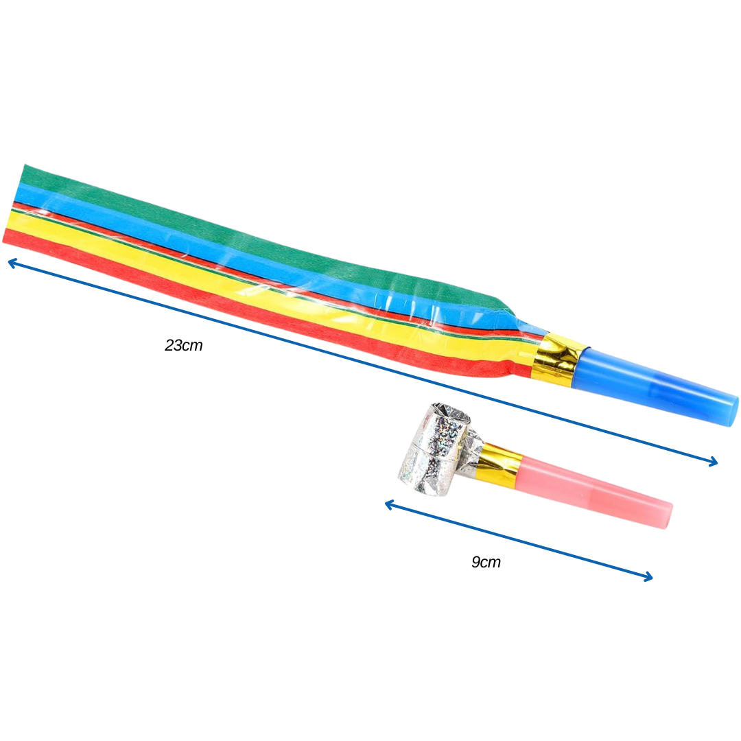 La cerbatana silbato de fiesta es un accesorio clásico de cotillón, ideal para animar cumpleaños, eventos y celebraciones. Fabricada en material liviano, es fácil de usar y genera un sonido divertido que suma energía al ambiente.