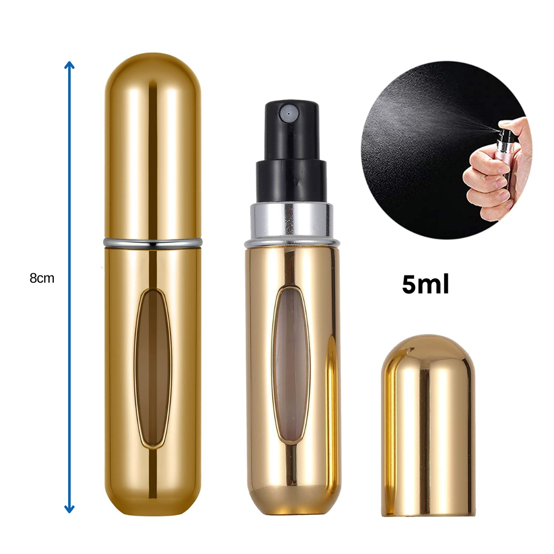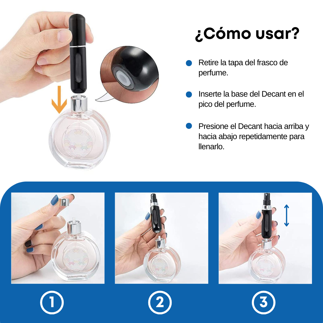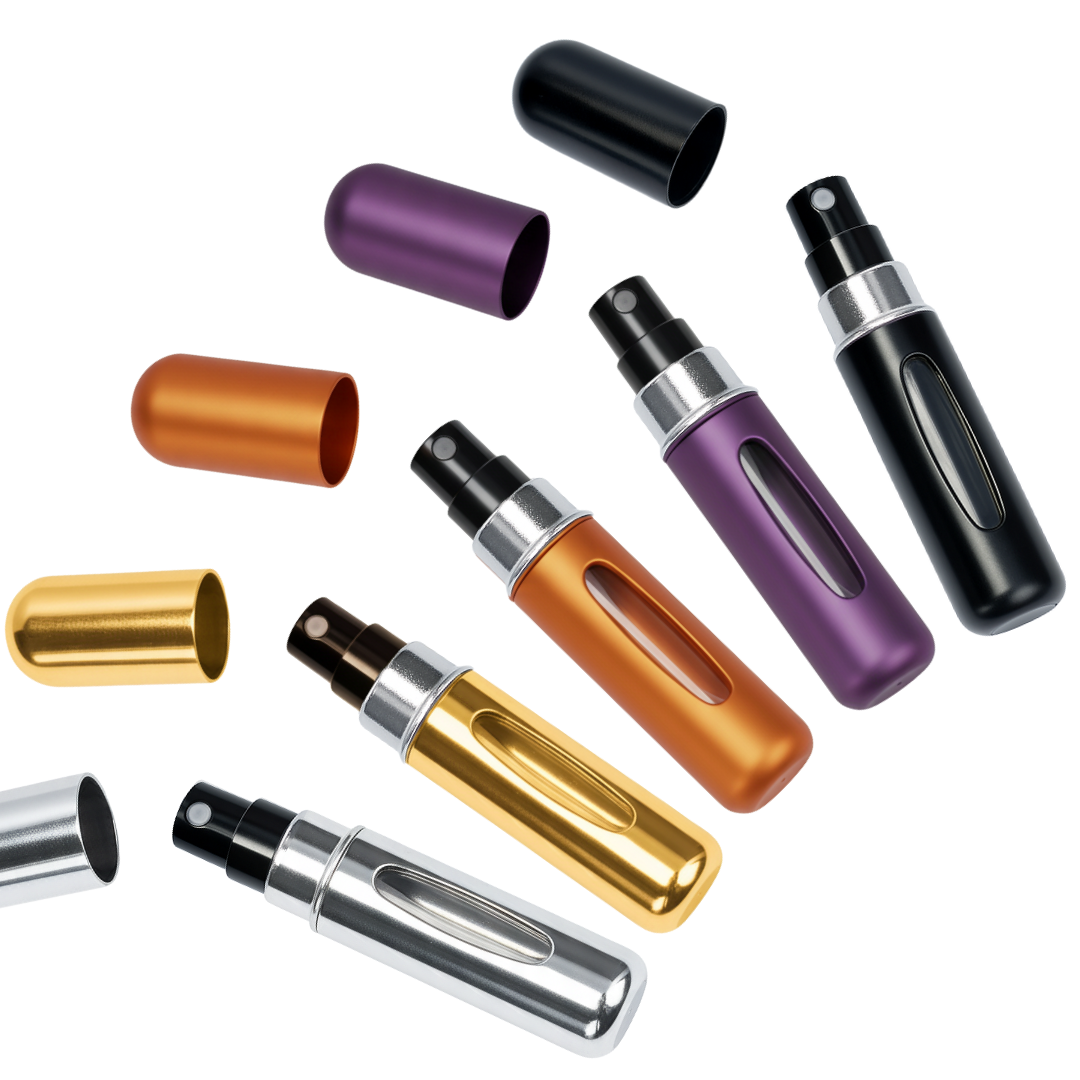 El decant de perfume recargable de 5 ml es la opción ideal para llevar tu fragancia favorita a todos lados de forma práctica y segura. Su tamaño compacto permite transportarlo cómodamente en la cartera, mochila o bolsillo, siendo perfecto para uso diario o viajes.