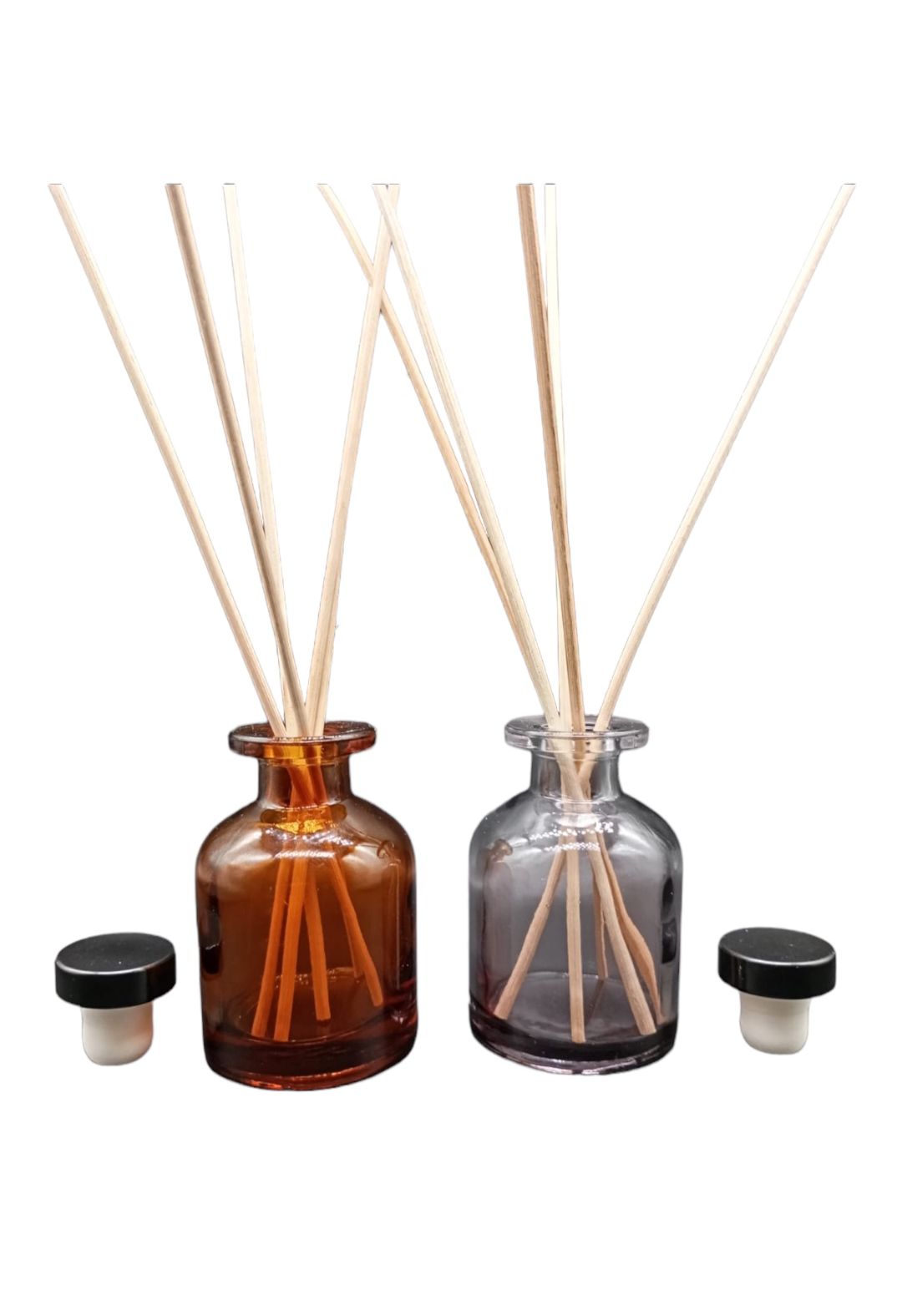 Difusor Vidrio 100ml con Tapón Negro y 5 Varitas Naturales