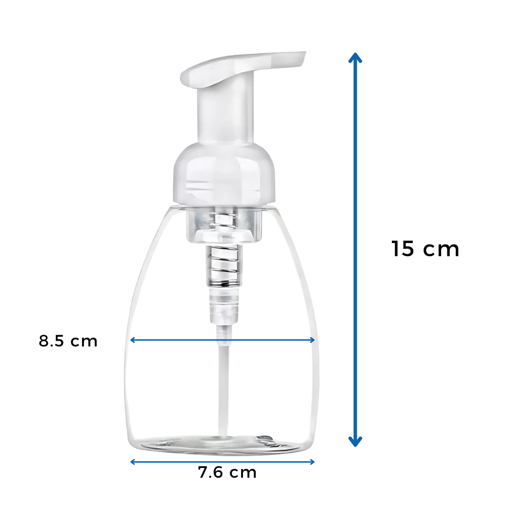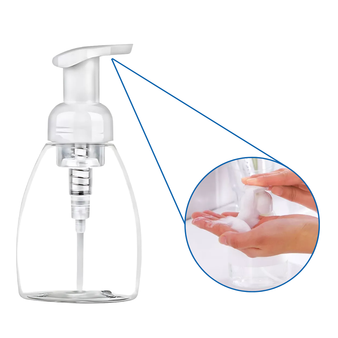Nuestro Envase de 250ml con Dispensador de Espuma es perfecto para jabones líquidos espumosos, sanitizantes y productos de higiene. Su mecanismo transforma el líquido en espuma suave, optimizando el uso y brindando una experiencia cómoda.