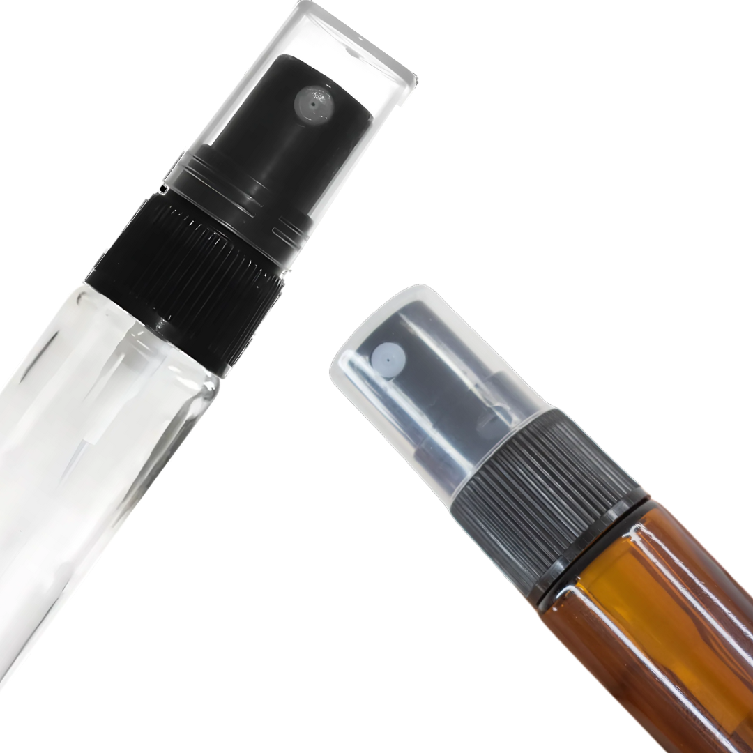 Nuestro Envase Spray de Vidrio de 10ml con atomizador negro es ideal para perfumes, brumas, aceites esenciales y más. Compacto, resistente y con una pulverización fina que asegura una aplicación uniforme.