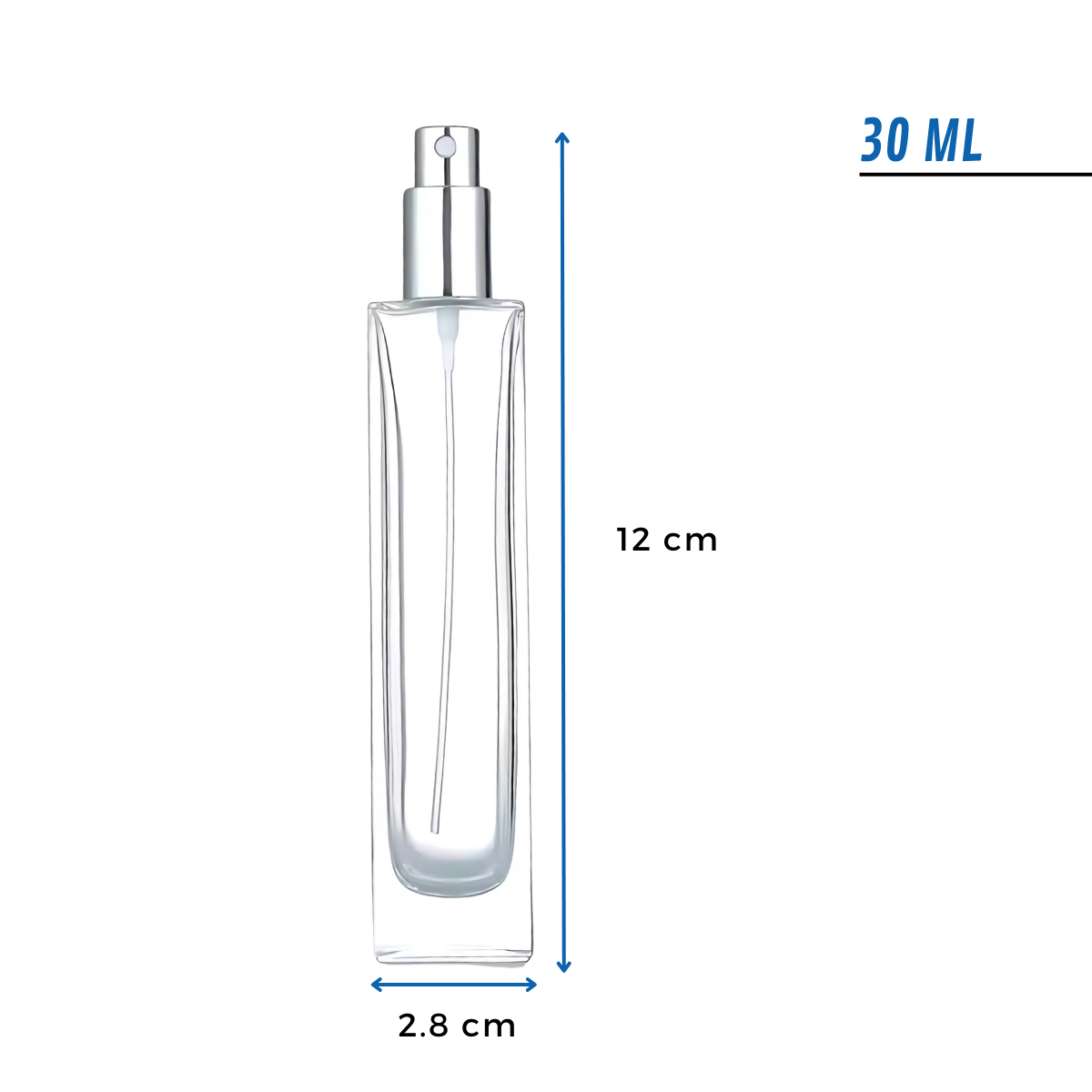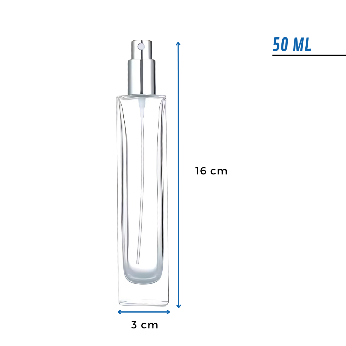 Un diseño clásico con un toque moderno. El Frasco Perfume Vidrio Rectangular es la opción perfecta para quienes buscan un envase elegante y funcional para sus fragancias.