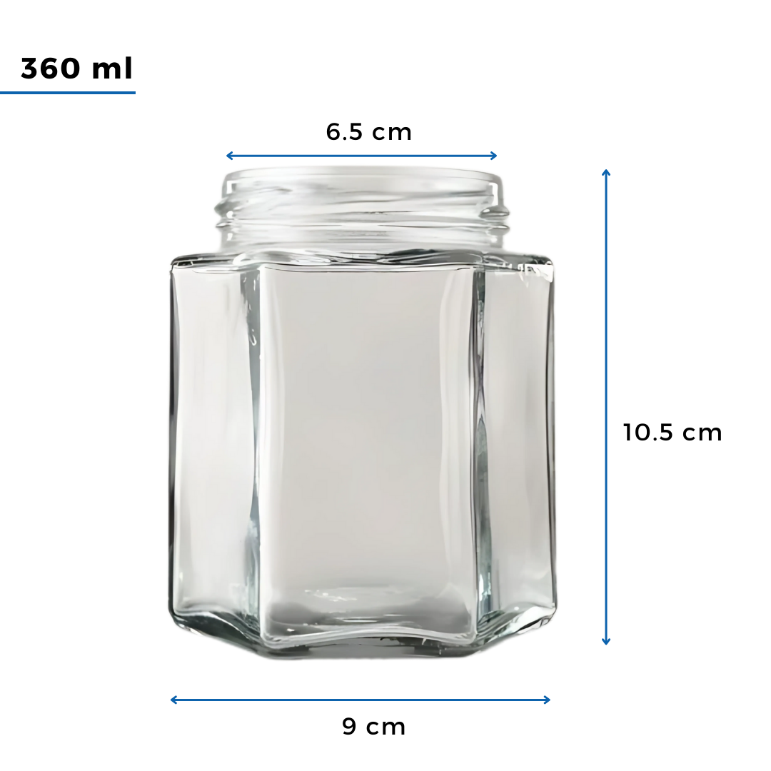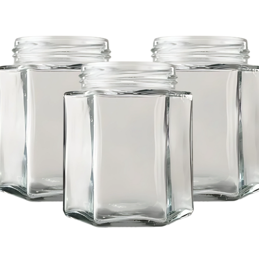 Nuestro Bollón Hexagonal de Vidrio destaca por su diseño geométrico único, perfecto para almacenar alimentos, miel, conservas, o utilizar como envase decorativo. Sus tapas en negro, blanco o dorado suman elegancia a cualquier presentación.
