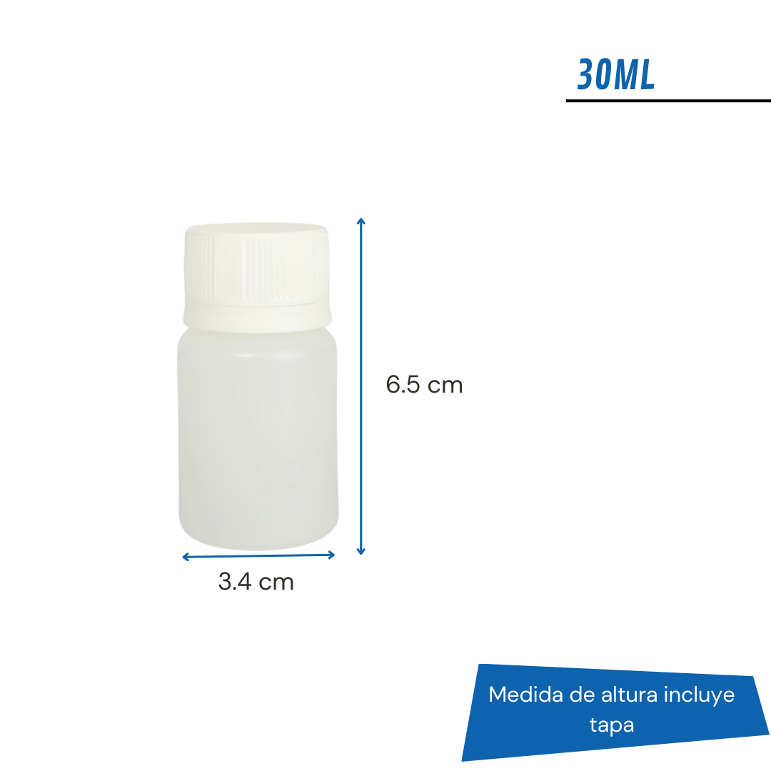 Disponible en 5 tamaños (30ml, 60ml, 100ml, 250ml y 500ml), este frasco es perfecto para cosmética, suplementos, farmacia, especias, polvos, cremas y más. La tapa ciega garantiza cierre hermético y máxima protección, preservando la frescura del contenido.