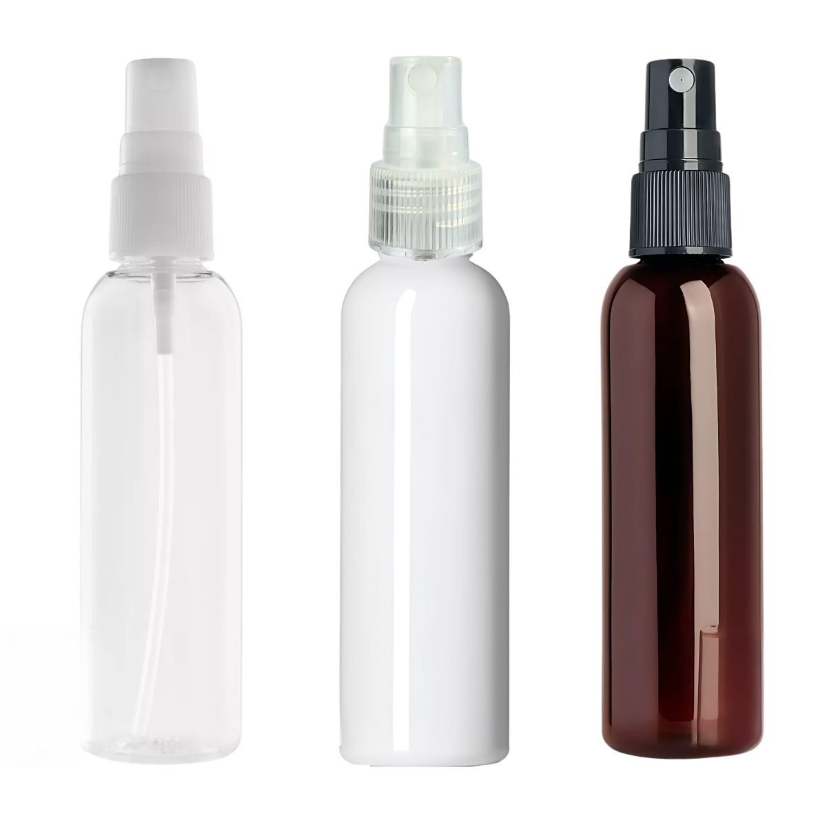 Con un diseรฑo resistente y ligero, este frasco cuenta con un spray de atomizaciรณn amplia que permite una distribuciรณn uniforme del producto. Disponible en seis tamaรฑos (30ml, 60ml, 100ml, 120ml, 250ml alto y 250ml bajo) y tres colores de spray (negro, blanco y natural), se adapta a distintas necesidades.