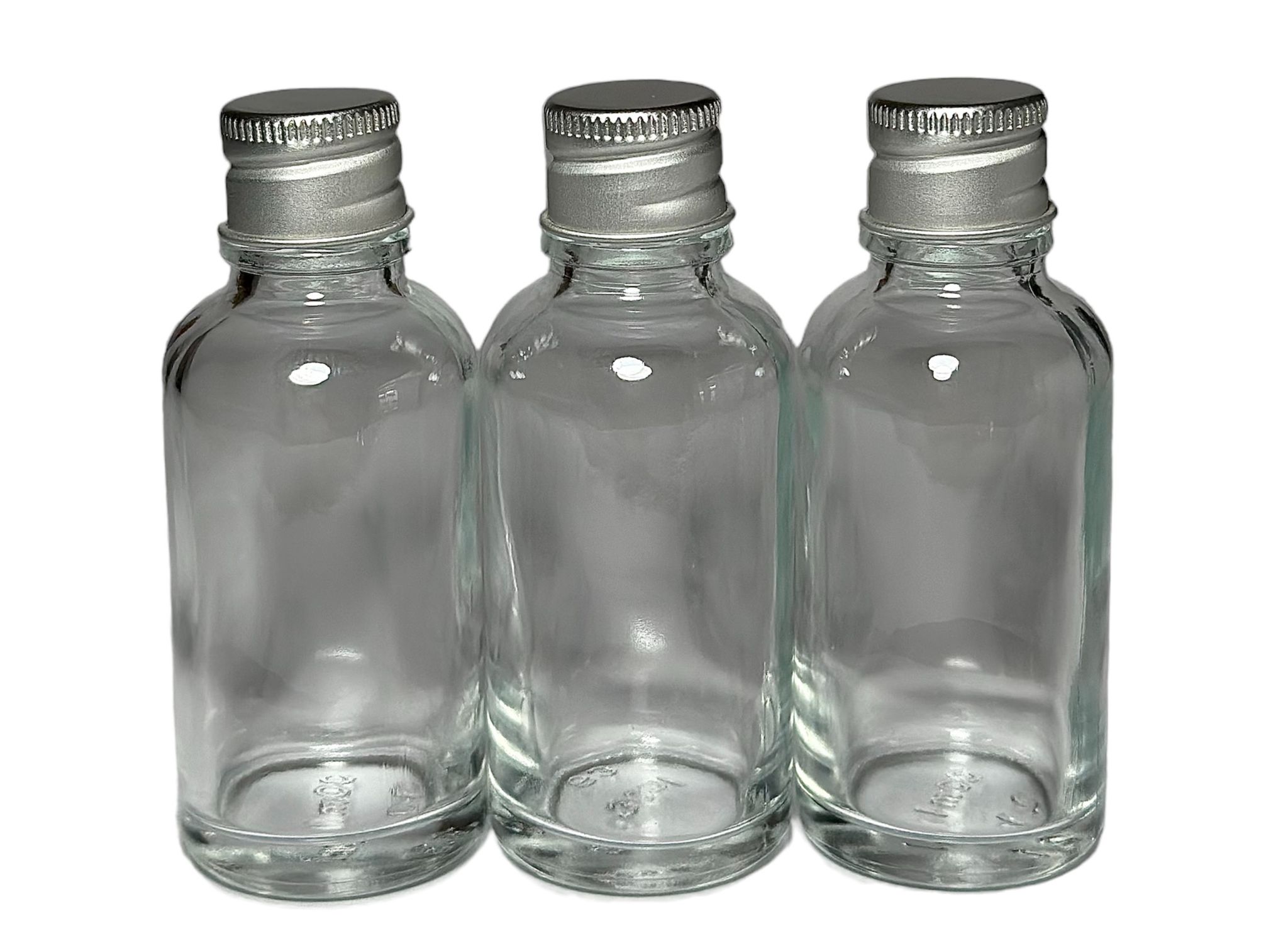 Frasco Vidrio Transparente Tapa Metálica Con Anti-Derrame 30ml