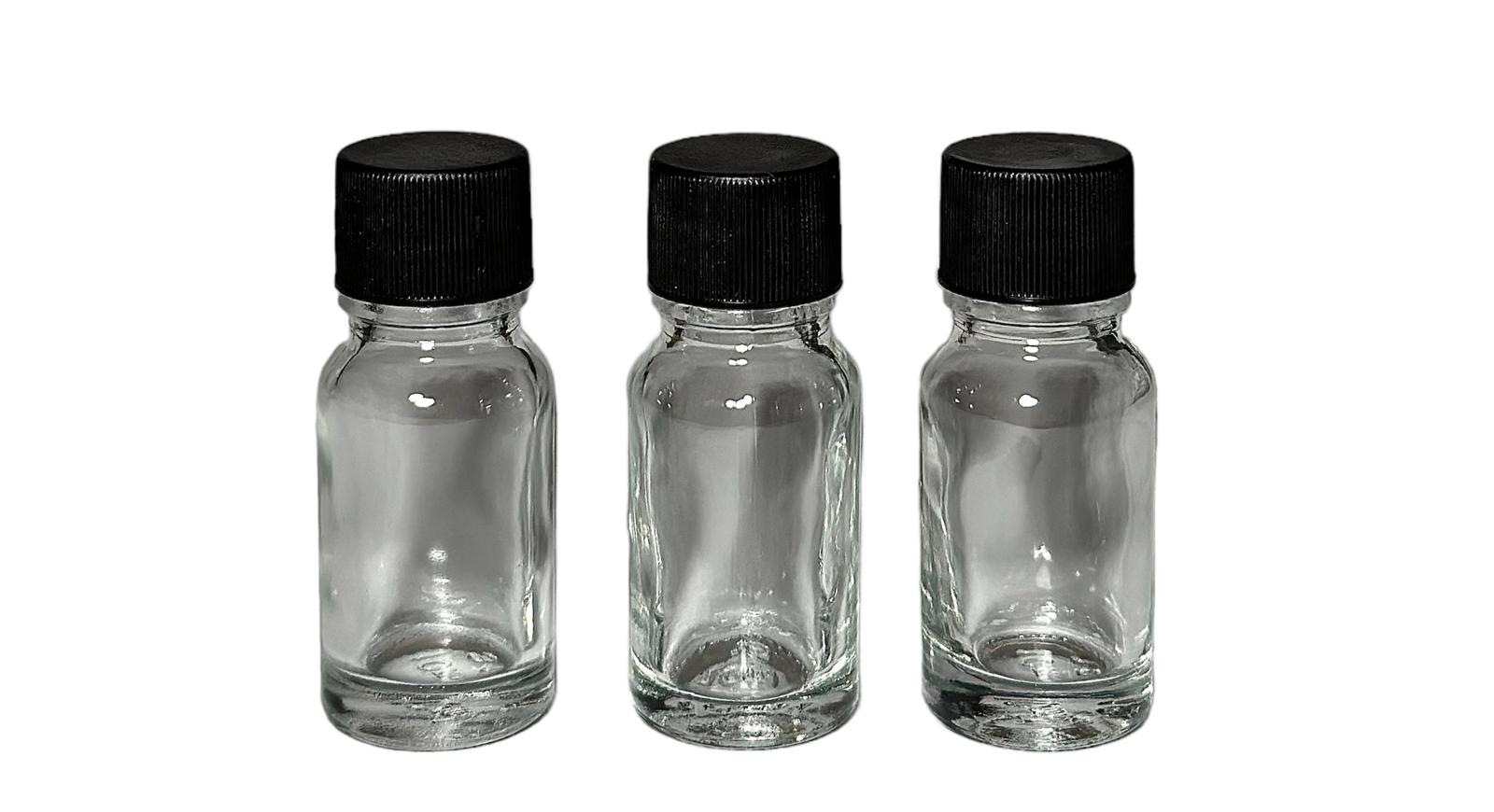Frasco vidrio transparente tapa plástica c/antiderrame 10ml