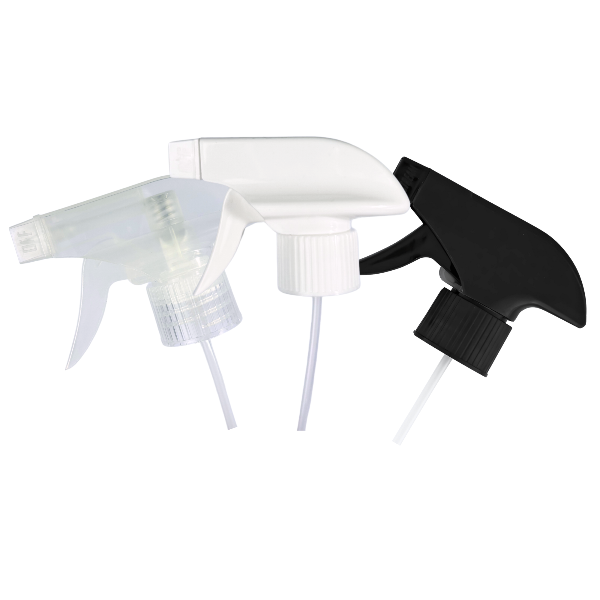 Disponibles en blanco, negro o natural, estos gatillos se adaptan fácilmente a distintos usos: productos de limpieza, cosméticos, aromatizantes y más.