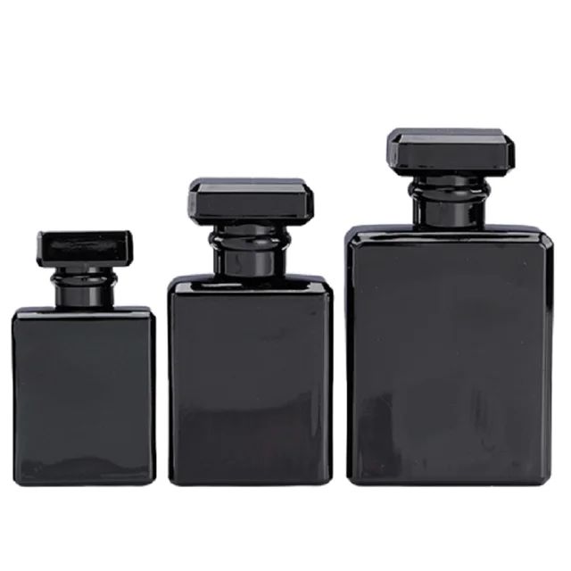 Frasco Perfume Plano Negro | Tapa a Presión | Tres Medidas