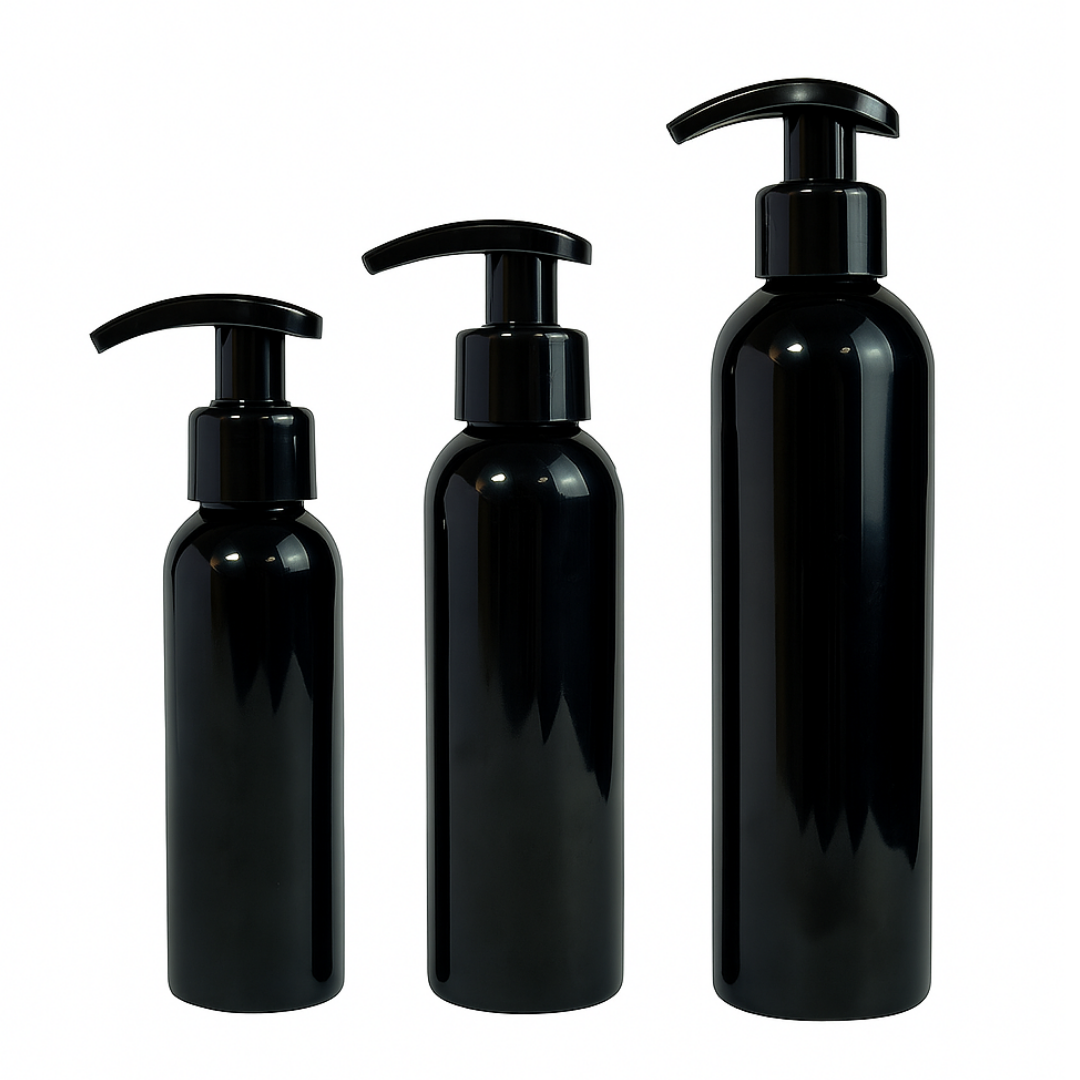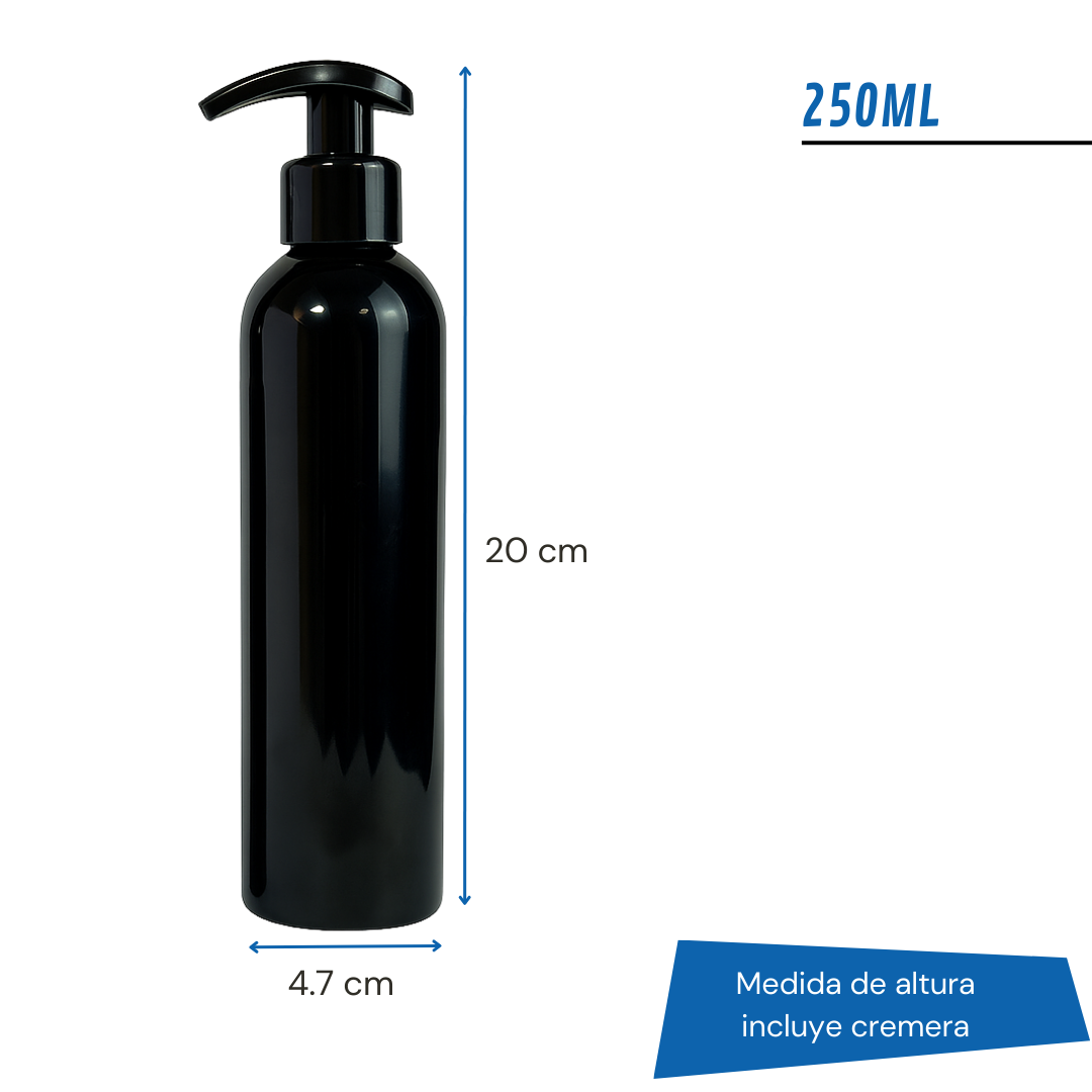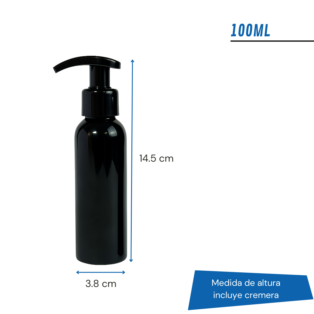 Frasco PET Negro Con Cremera | 3 Tamaños Disponibles