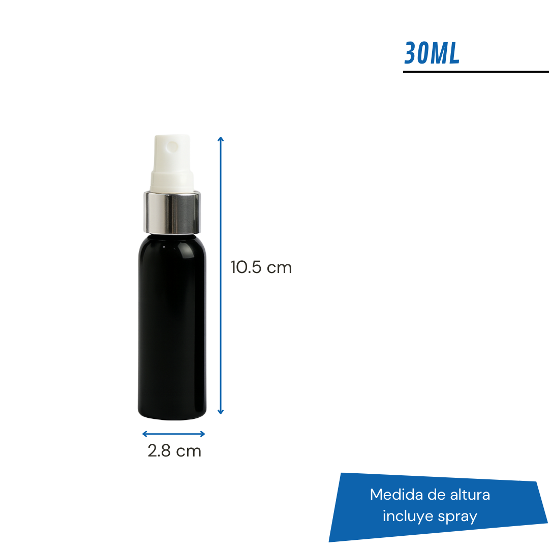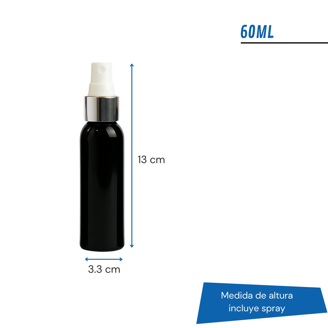 ¿Querés que tu producto destaque a primera vista? Este frasco PET negro con spray efecto metal combina elegancia y funcionalidad, ideal para perfumería, cosmética, aromatizantes y cuidado personal.