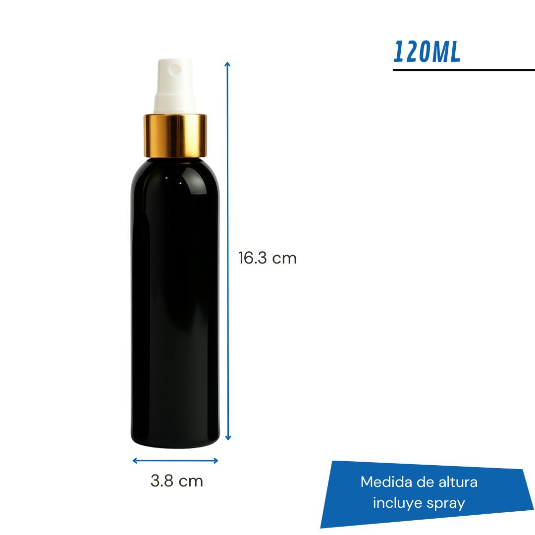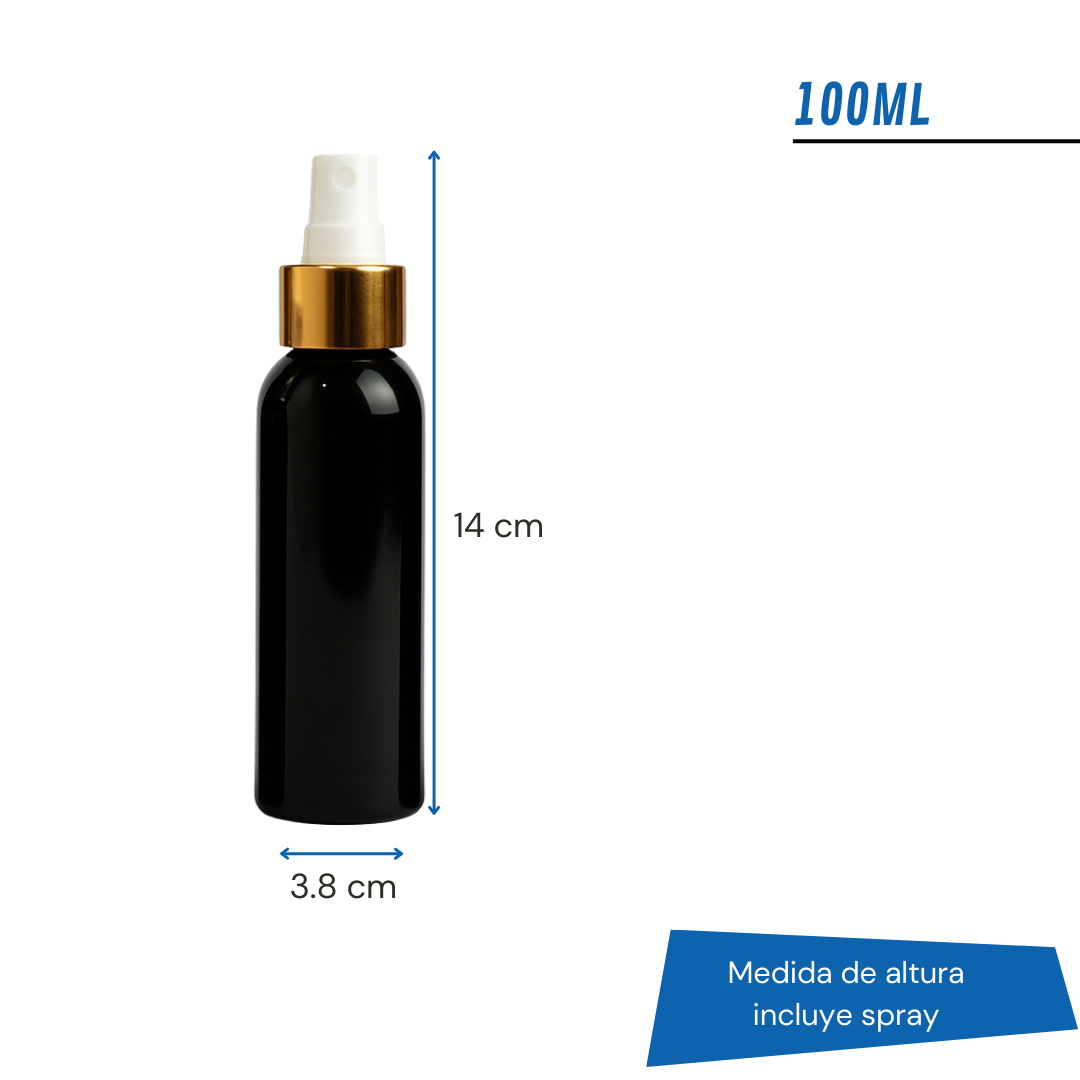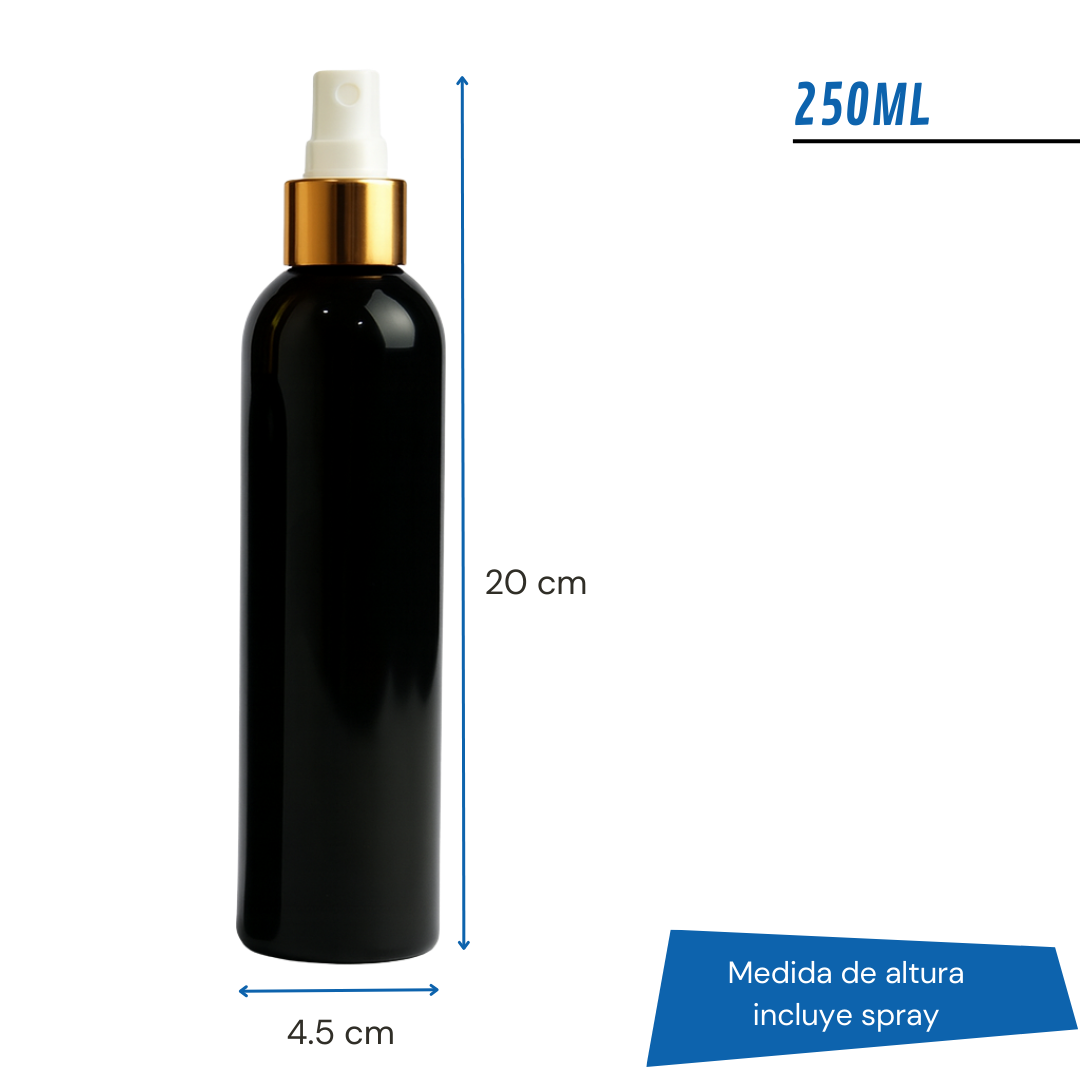 Frasco PET Negro Con Spray Efecto Metal | 5 Tamaños Disponibles