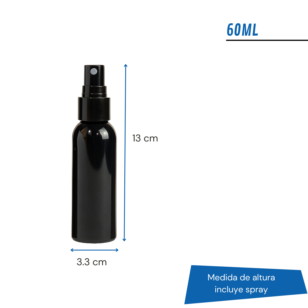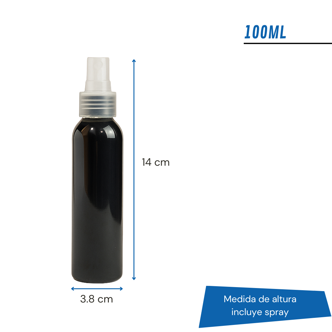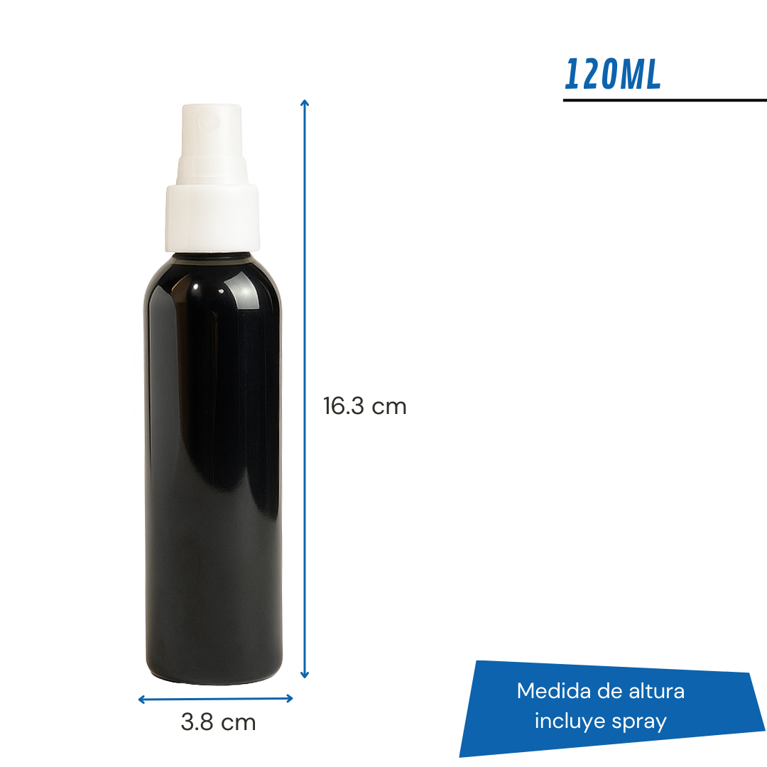 Frasco PET Negro Con Spray | 5 Tamaños Disponibles