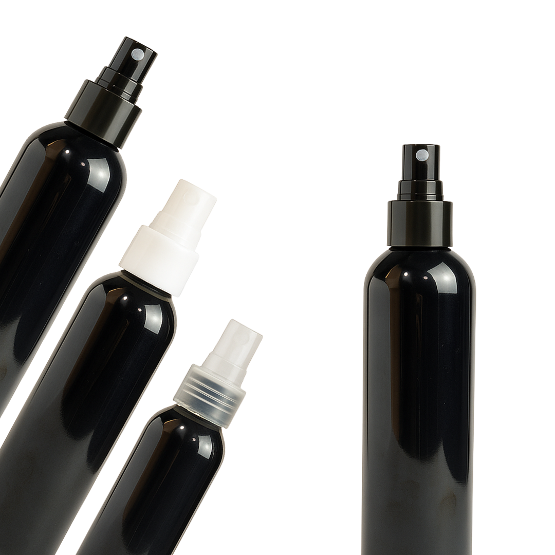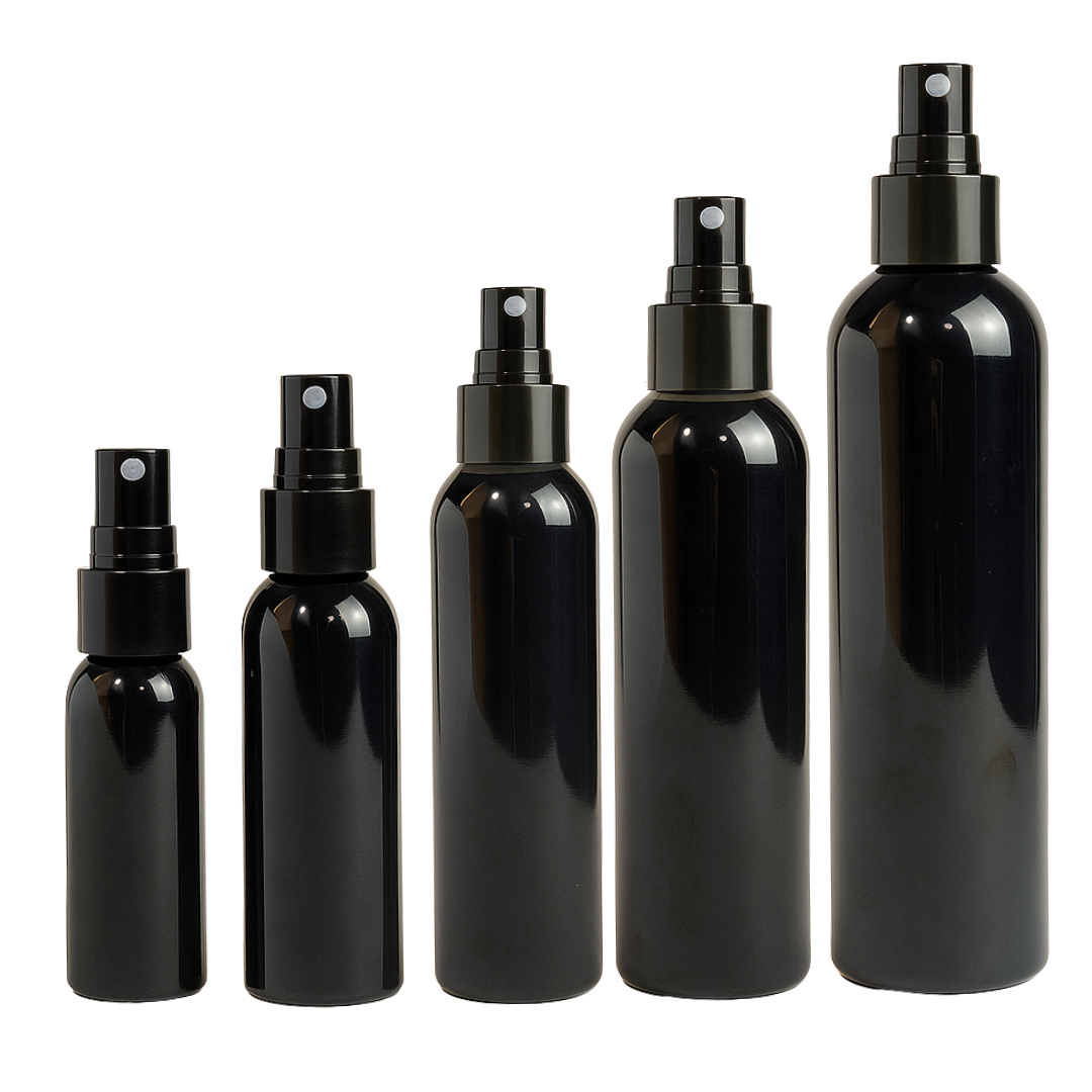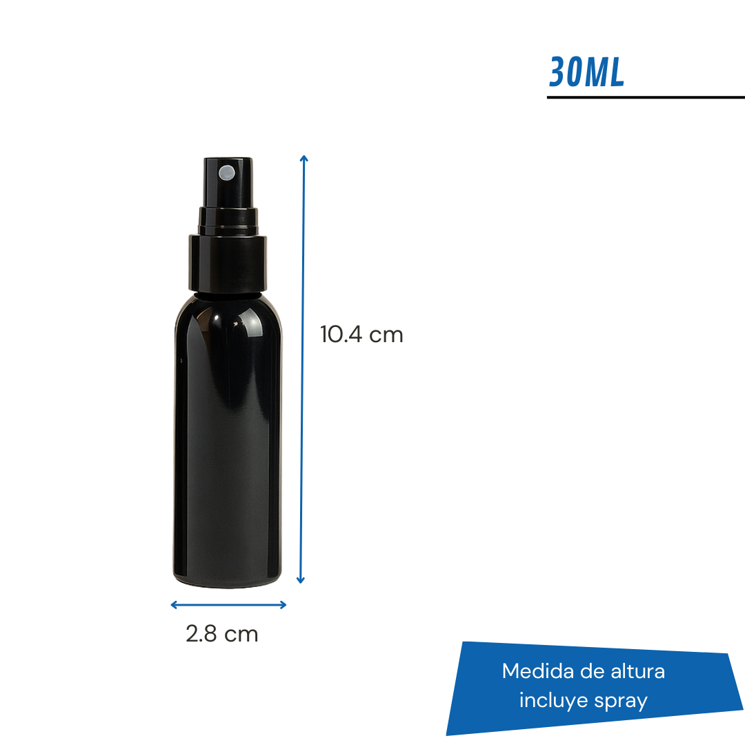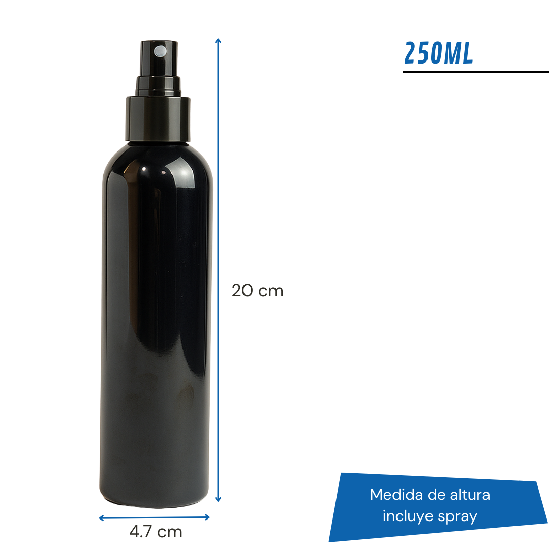 Frasco PET Negro Con Spray | 5 Tamaños Disponibles