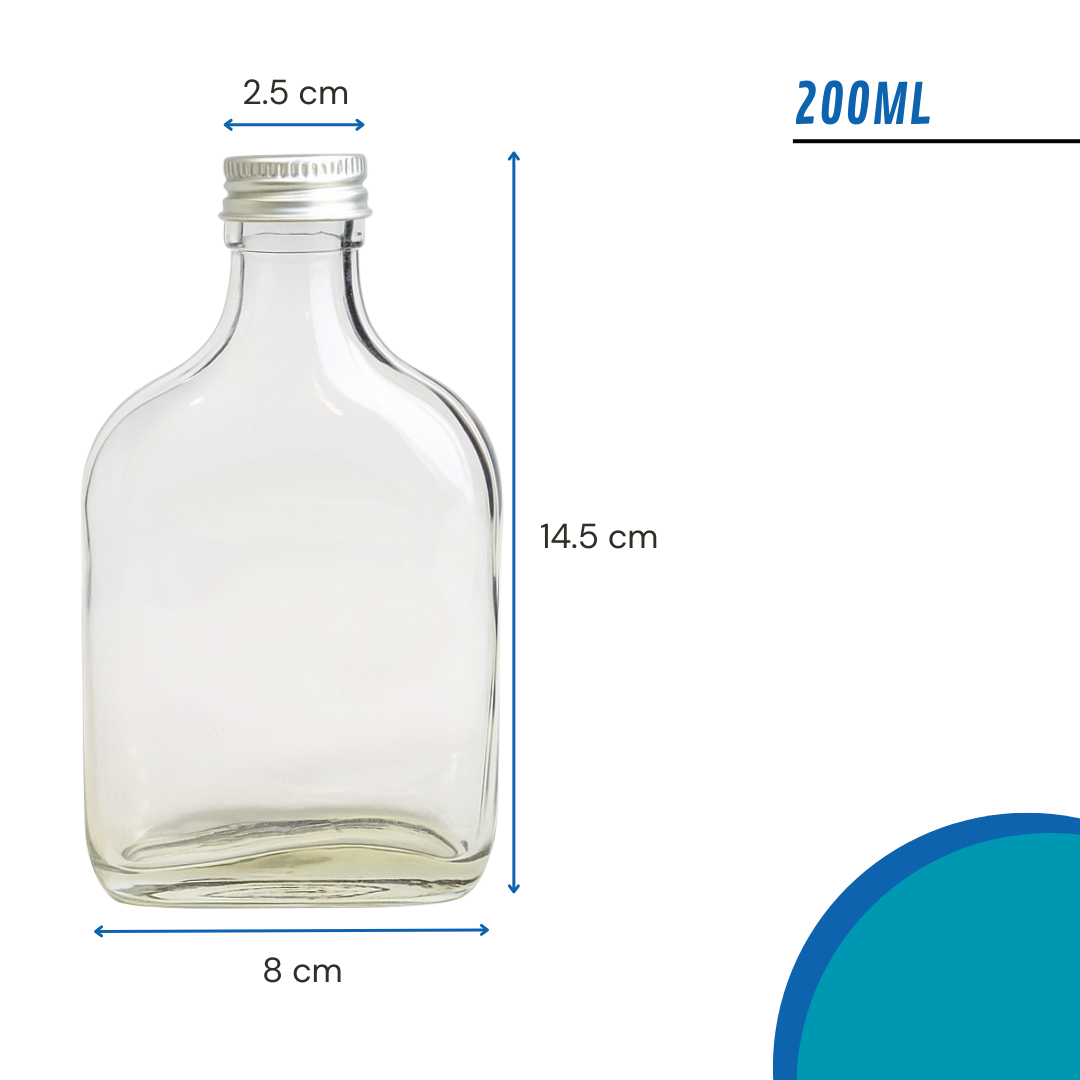 Ideal para licores, jugos, aceites, vinagres, jarabes o bebidas artesanales, esta petaca aporta un toque profesional y atractivo a tu presentación, perfecta tanto para uso personal como para venta.