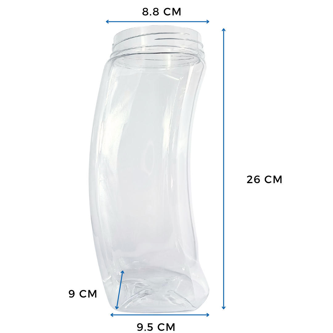 Ideal para alimentos, cosmรฉticos, suplementos y mรกs. Su gran capacidad y resistencia lo hacen una opciรณn versรกtil para negocios y uso personal. Ademรกs, su estructura curvada aporta un diseรฑo innovador que destaca frente a otros envases.