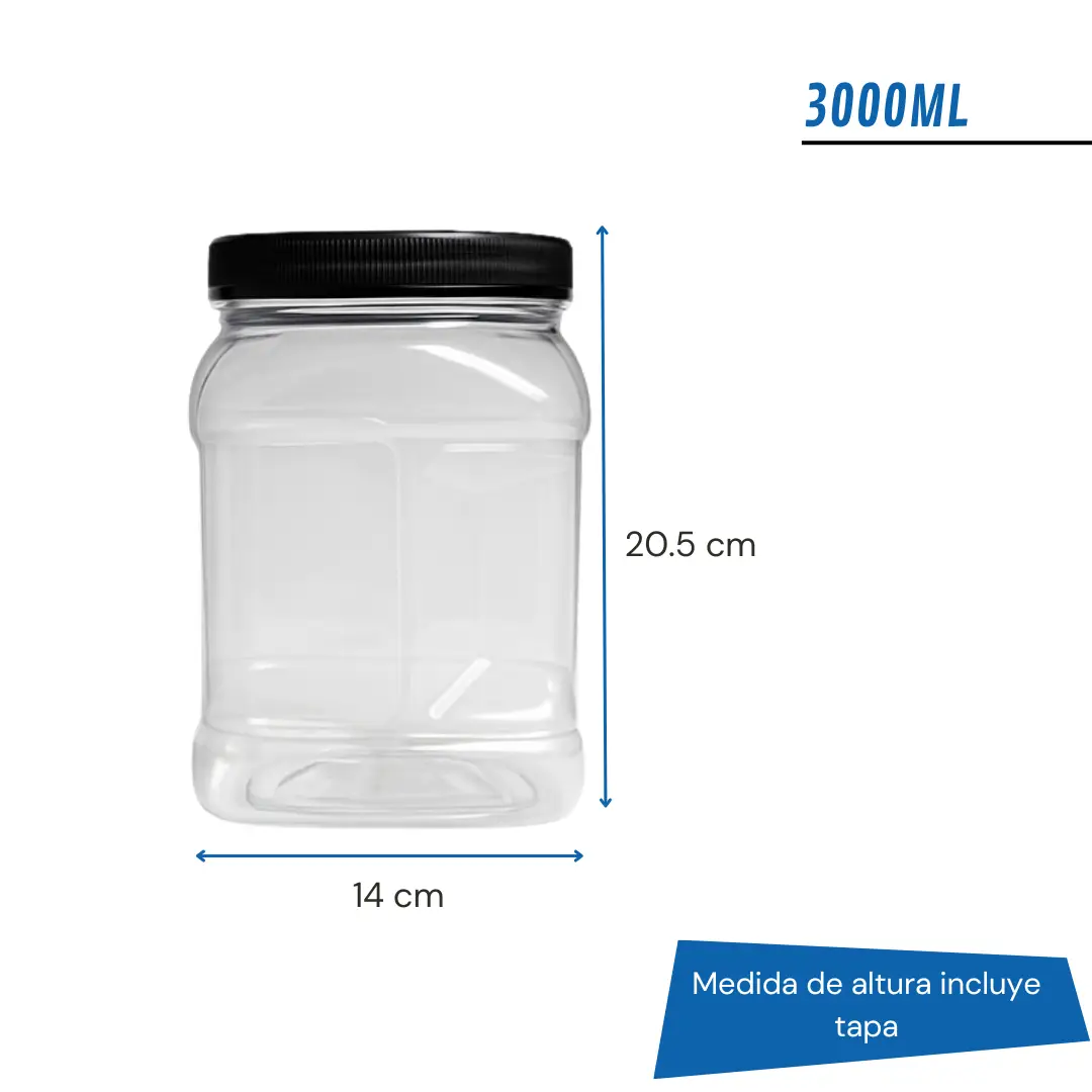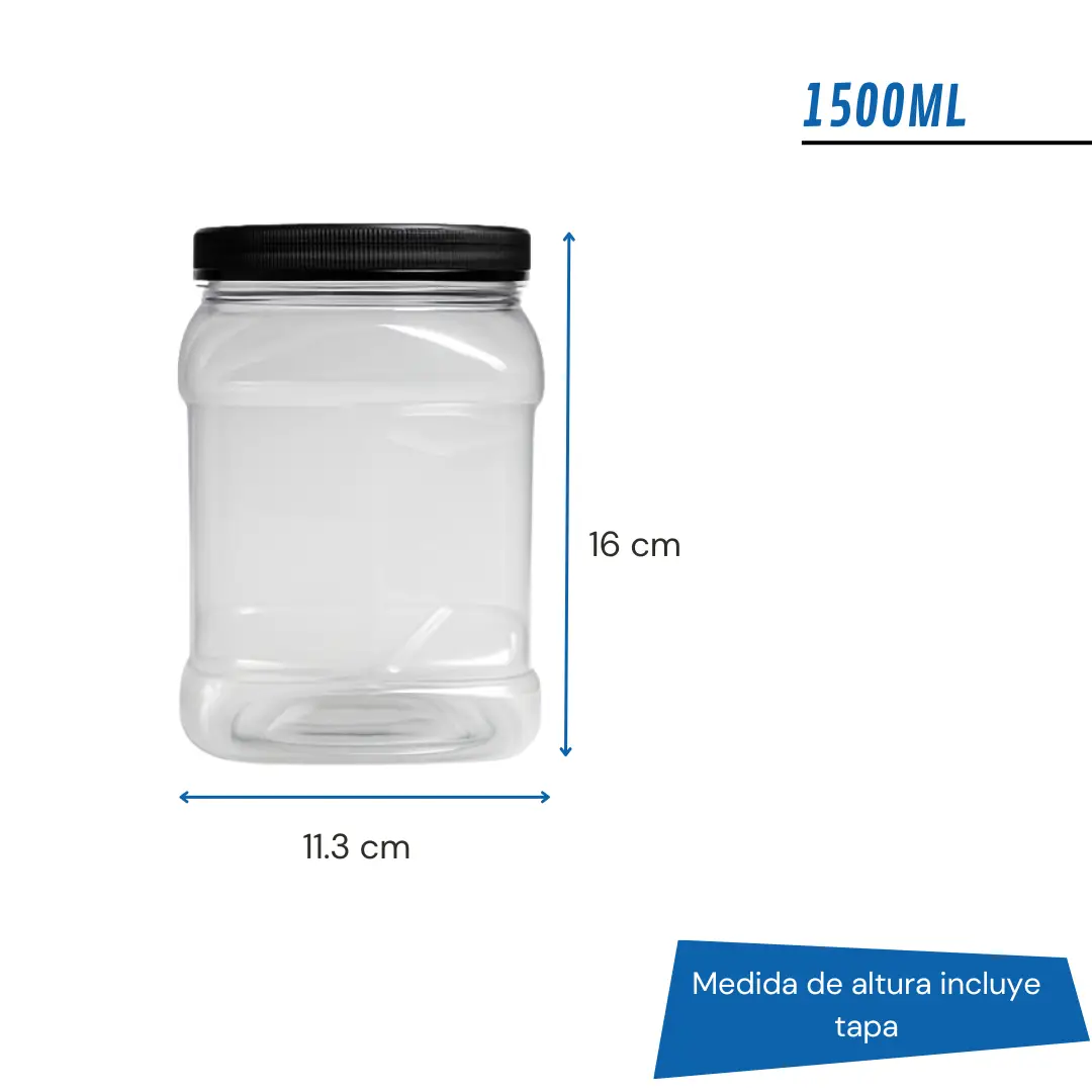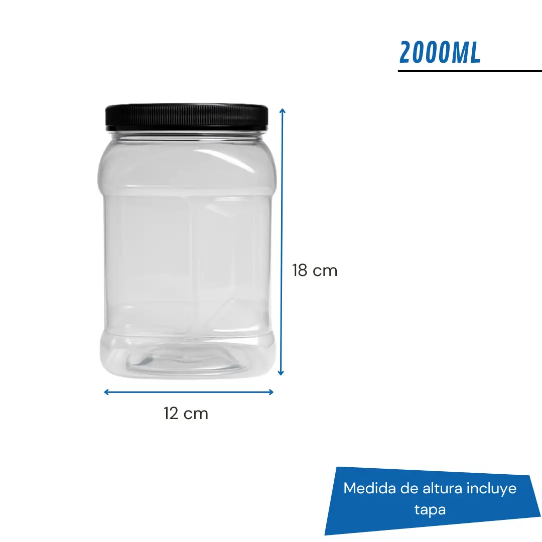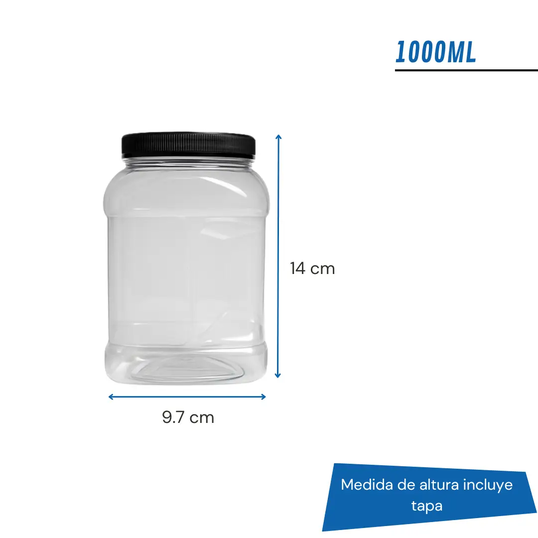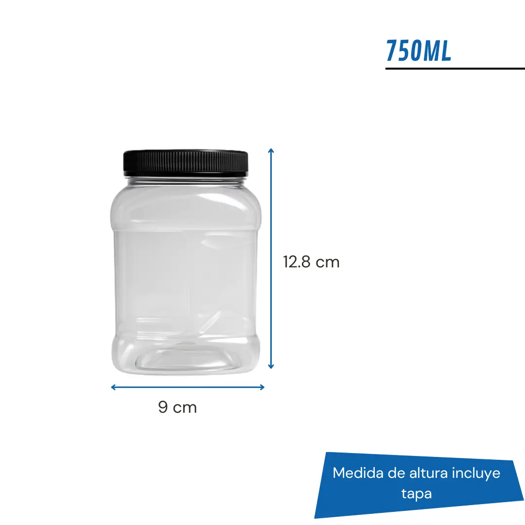Pote Pet Cuadrado Con Tapa | 5 Tamaños Disponibles