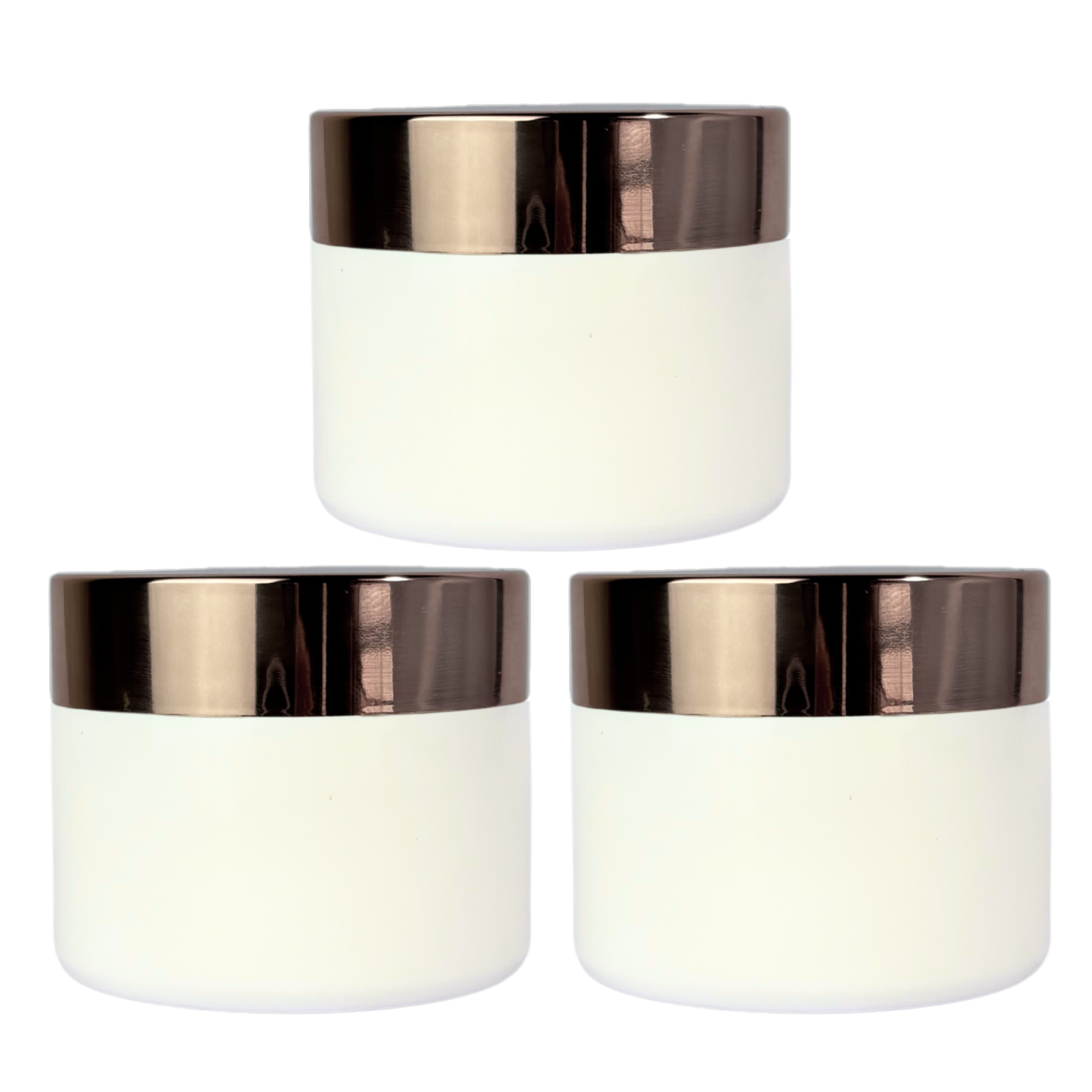 Este pote de vidrio blanco de 50g con tapa rosa suave se destaca por su diseño minimalista y elegante.