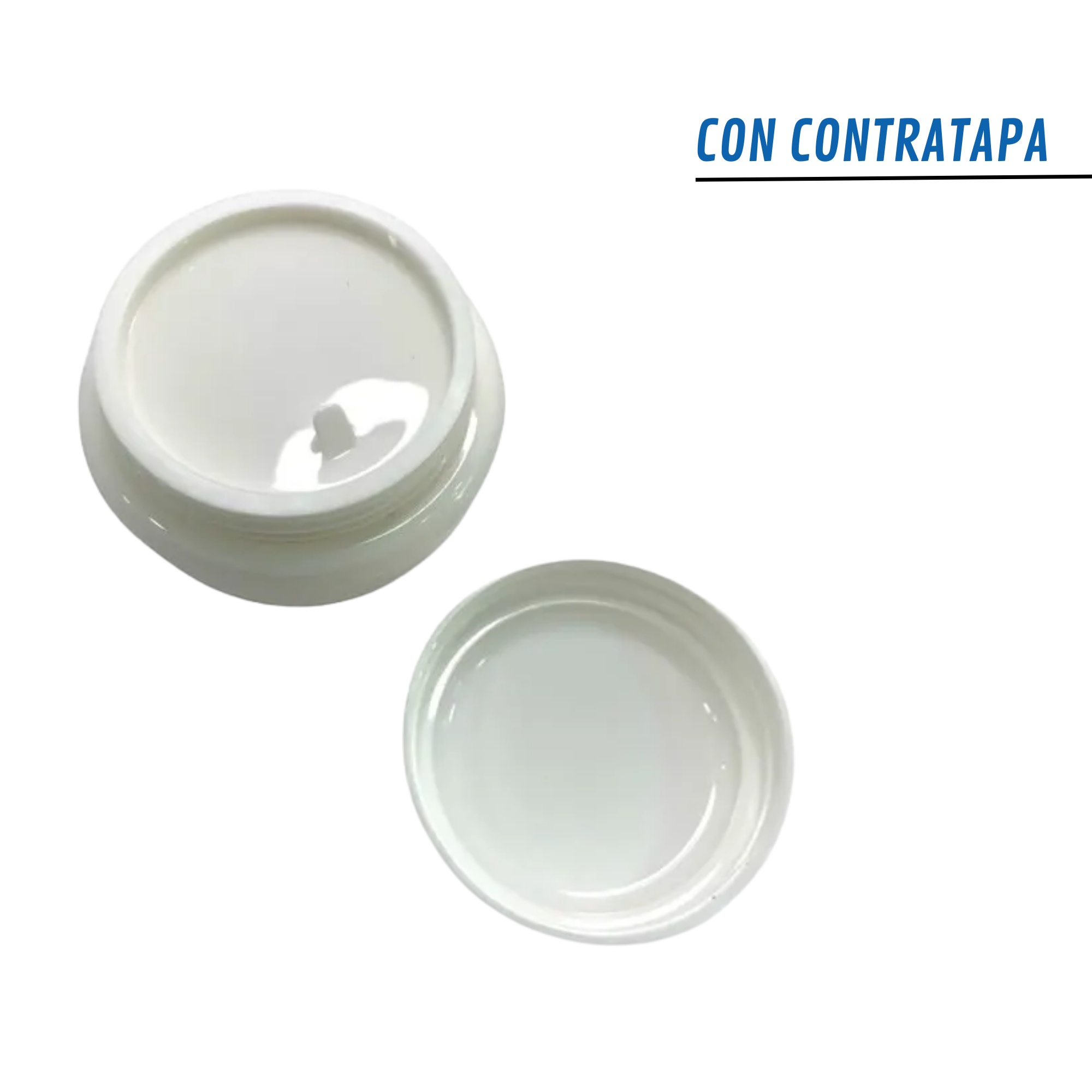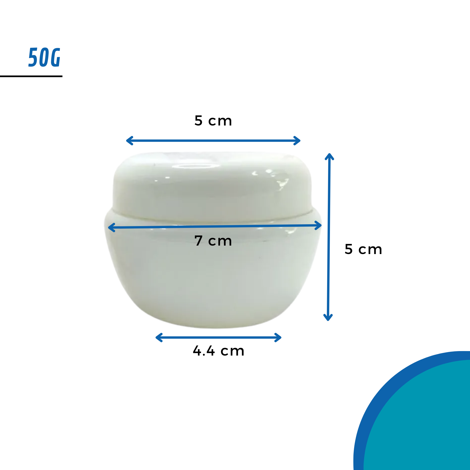 Nuestros potes cosméticos cónicos blancos son ideales para cremas, bálsamos, geles o cualquier tipo de producto de cuidado personal. Están disponibles en 5 presentaciones: 5g, 10g, 20g, 30g y 50g, lo que te permite elegir el tamaño exacto según tu necesidad.