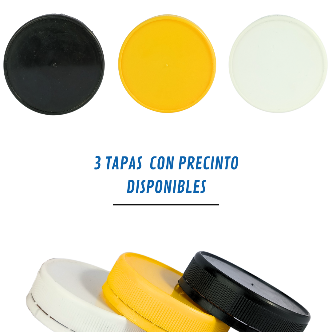 Con tapas precintadas en amarillo, blanco y negro, estos potes ofrecen máxima seguridad y confianza en cada venta. Su diseño transparente permite destacar el color y la pureza de tu producto.