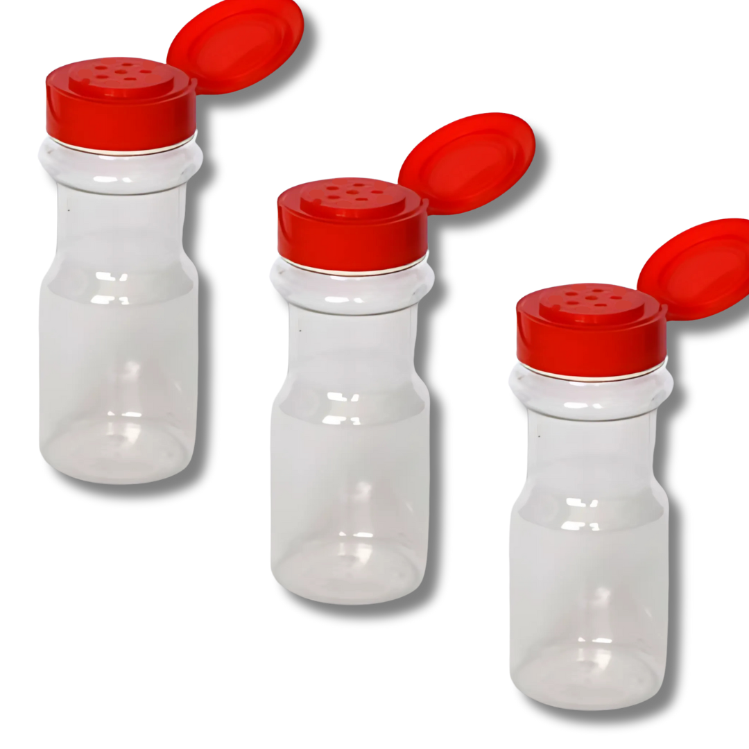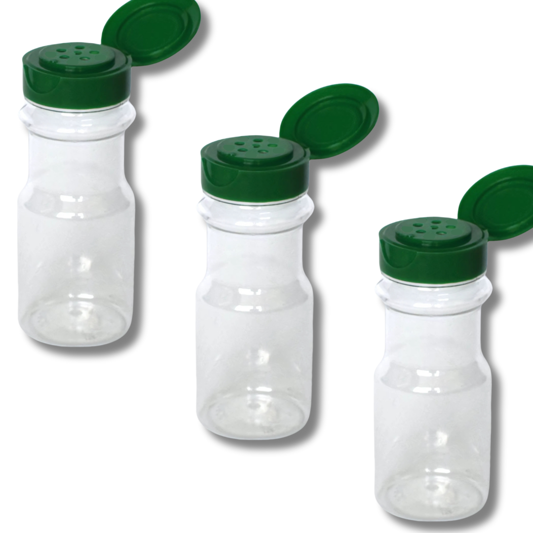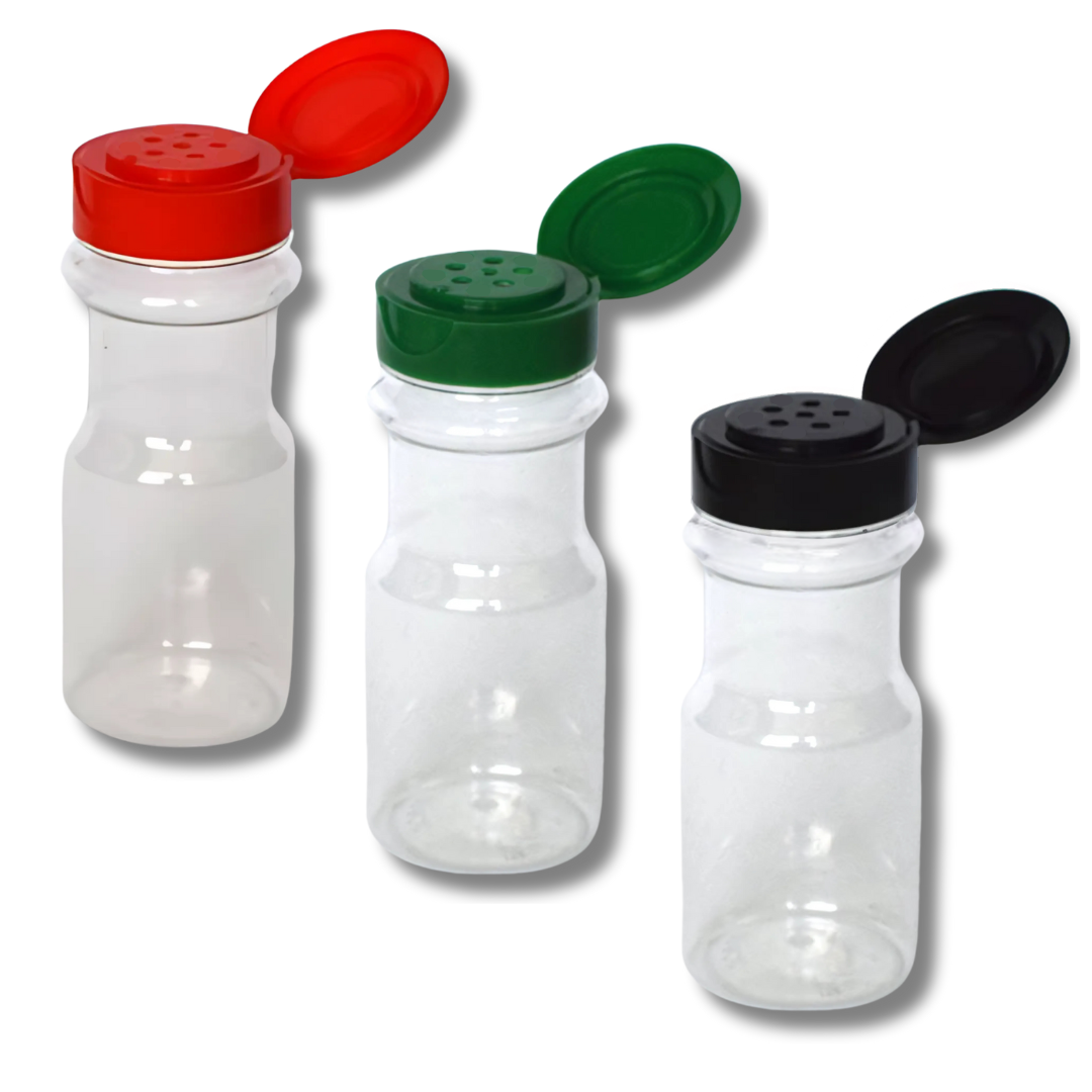 Nuestros saleros PET de 100 y 225 gramos estรกn diseรฑados para adaptarse a todas tus necesidades. Fabricados en plรกstico resistente, son livianos y fรกciles de manipular. Su tapa con liner asegura un cierre hermรฉtico, preservando la frescura y evitando derrames. Disponibles en tres colores: negro, verde y rojo, para que elijas el que mejor combine con tu espacio.