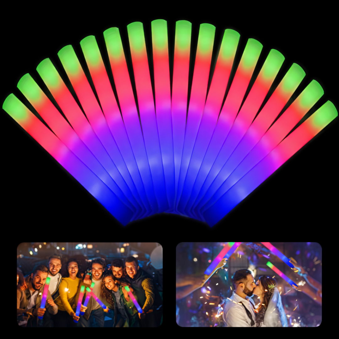 El tubo bastón de espuma con luces LED es un accesorio llamativo y divertido, ideal para animar fiestas, eventos nocturnos y celebraciones. Fabricado en espuma liviana, es cómodo de usar y seguro para todas las edades.