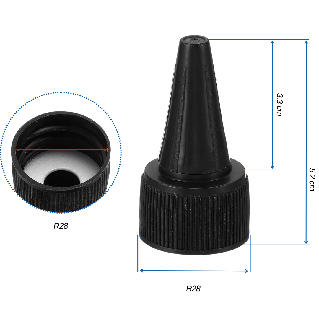 Son ideales para lรญquidos y semilรญquidos como salsas, aderezos, jugos espesos, cosmรฉtica, higiene personal y productos gourmet. Su compatibilidad con envases rosca 28 las vuelve una opciรณn versรกtil tanto para uso domรฉstico como profesional.