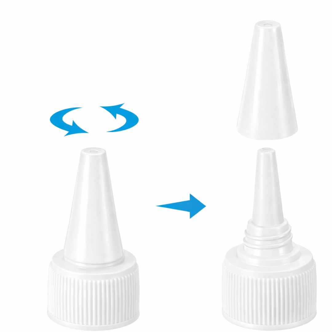 Su mecanismo giratorio permite abrir y cerrar de manera simple, mientras que el liner interior actรบa como barrera para evitar derrames y pรฉrdidas de producto durante el transporte o almacenamiento. Disponibles en color blanco o negro para adaptarse a distintas lรญneas de presentaciรณn.