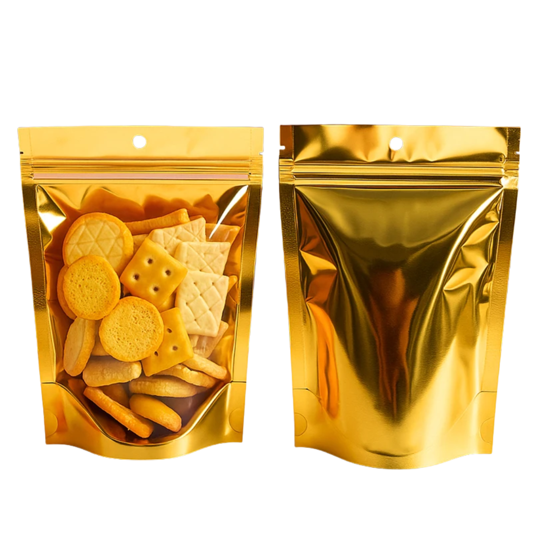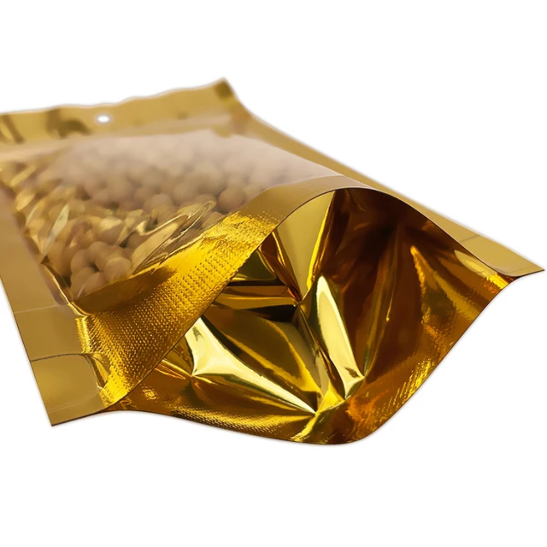 Bolsa Ziploc Aluminio Dorada Una Cara Transparente | Tres Tamaños
